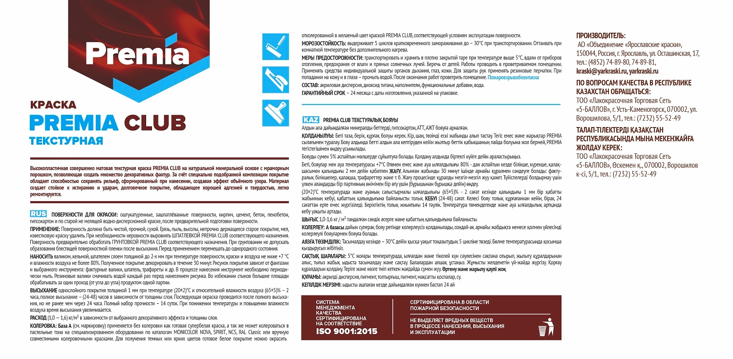 Линейка лакокрасочных материалов PREMIA CLAB – это краски, грунтовки и шпатлёвки высокого качества от известного российского производителя, которые создавались с учётом запросов и ожиданий профессиональных мастеров и полностью адаптированы к климатическим особенностям Российских регионов.