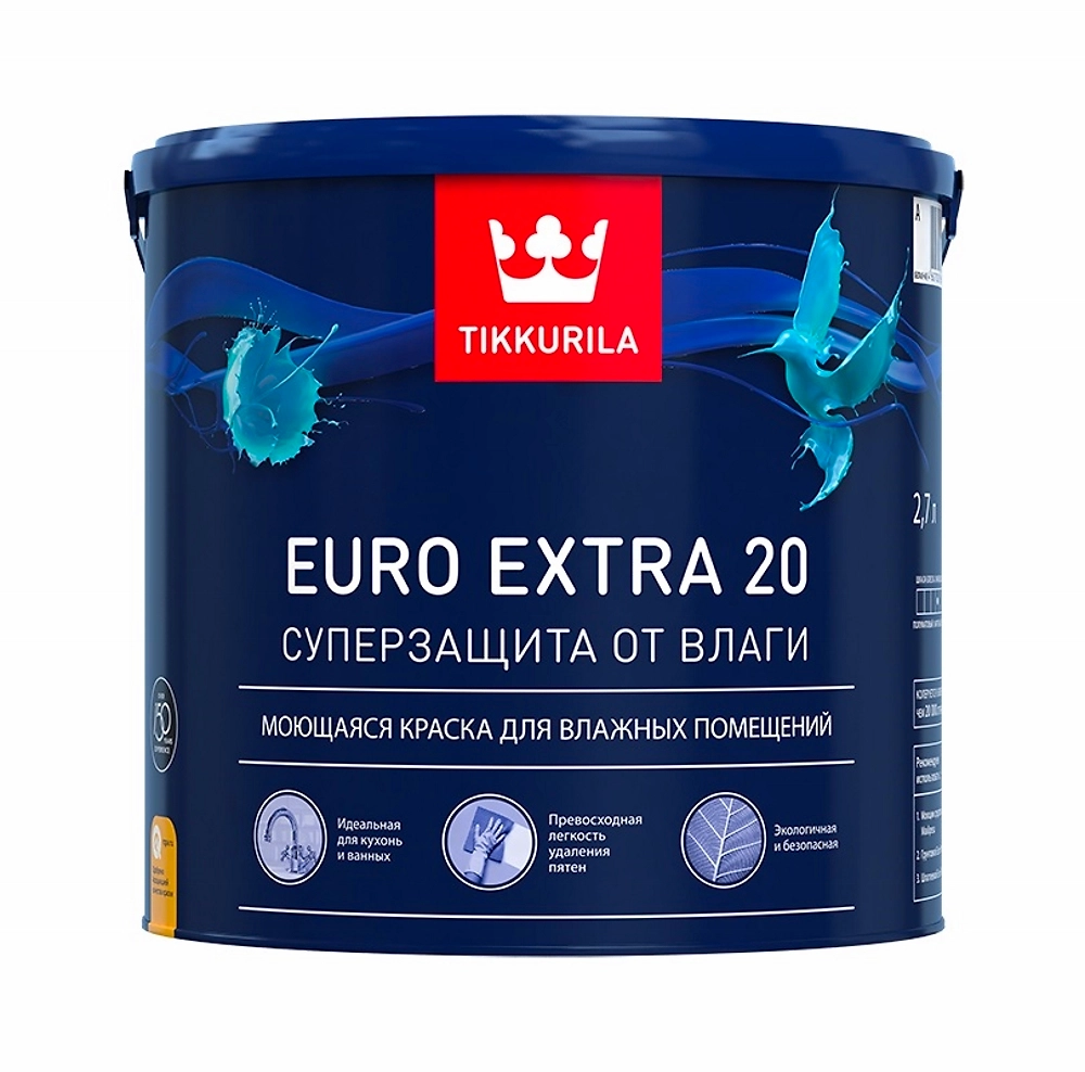 Краска интерьерная Tikkurila Euro Extra 20 полуматовая база C 2,7 л