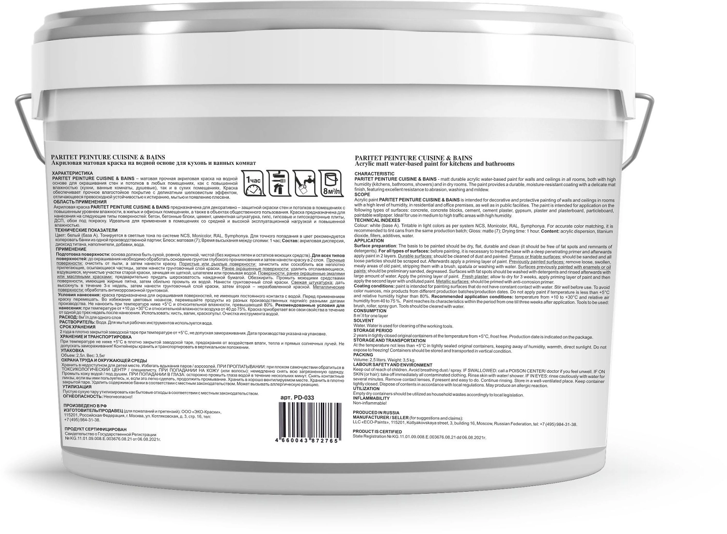 Краска интерьерная для кухонь и ванных Paritet Peinture Cuisine&Bains 2,5 л