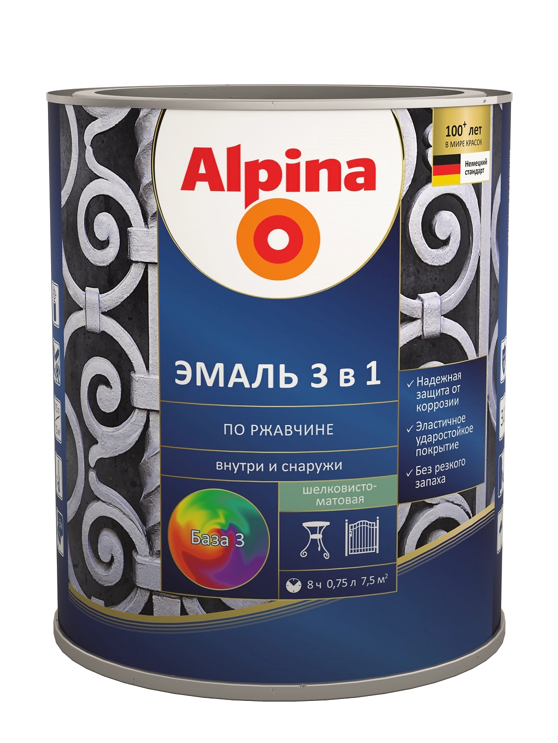 Эмаль по ржавчине Alpina 3 в 1 0,75 л