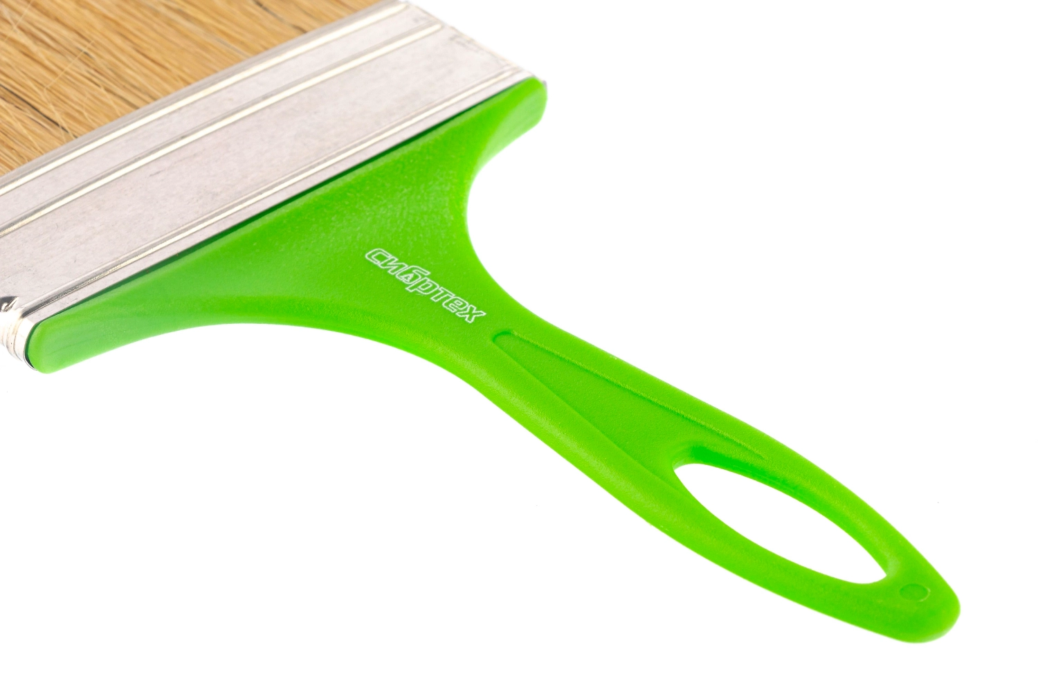 Кисть флейцевая Сибртех «Евро» 83304 шириной 100 мм и толщиной 8 мм, с натуральной щетиной и пластиковой ручкой, предназначена для первичного окрашивания либо создания финишного слоя на небольших или