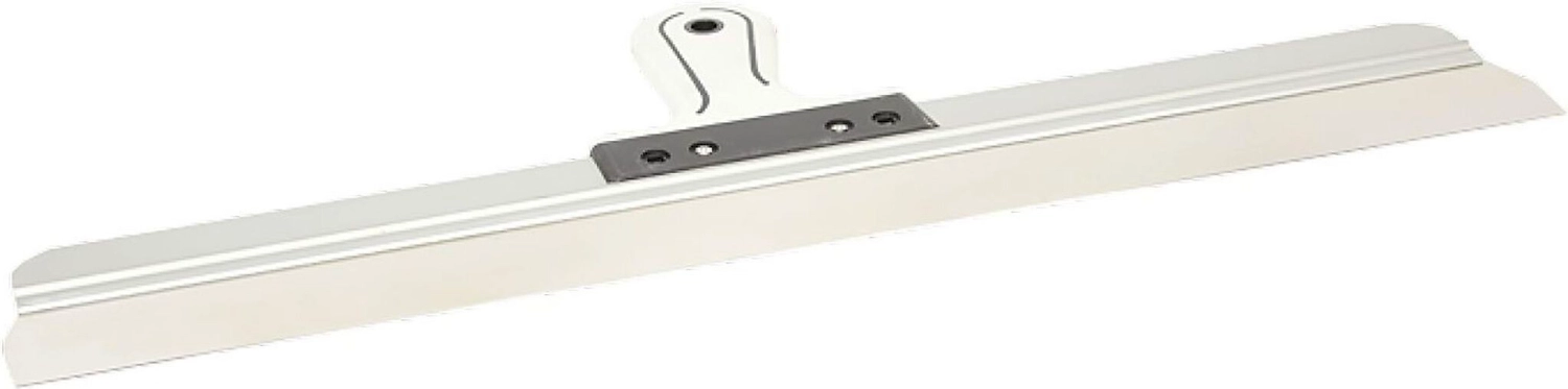 Изготовлен из нержавеющей стали, имеет алюминиевое ребро жесткости - которое предотвращает искривление полотна, двухкомпонентную эргономичную ручку обеспечивающую надежный захват инструмента, благодаря чему снижается утомляемость мастера создавая дополнительный комфорт при работе.