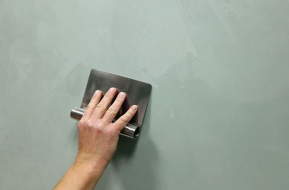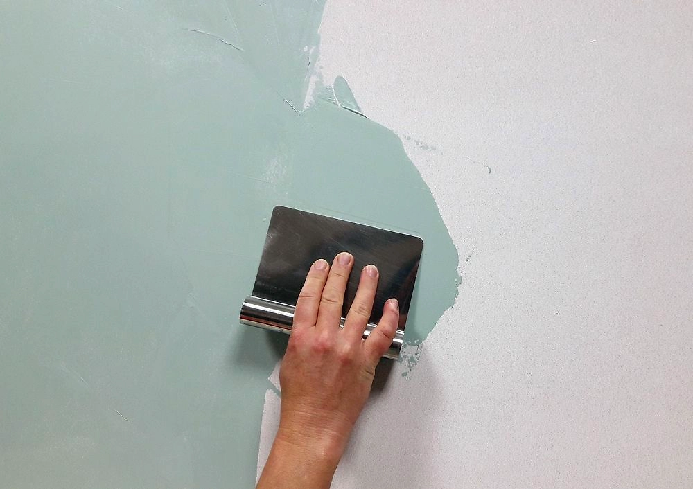 Для получения гладкого покрытия необходимо разгладить материал краем шпателя разнонаправленными движениями. Регулярно очищайте края инструментов мягкой губкой, чтобы удалить излишки продукта и избежать появления царапин.