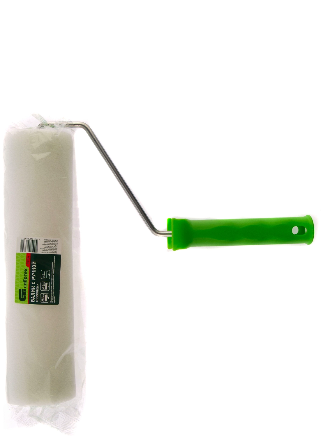 Валик Сибртех "ПОРОЛОН" 80104 шириной 250 мм, диаметром 48 мм, с ручкой 6 мм используется при проведении малярных работ с жидкими водно-дисперсионными ЛКМ: латексными, акриловыми, а также грунтовками