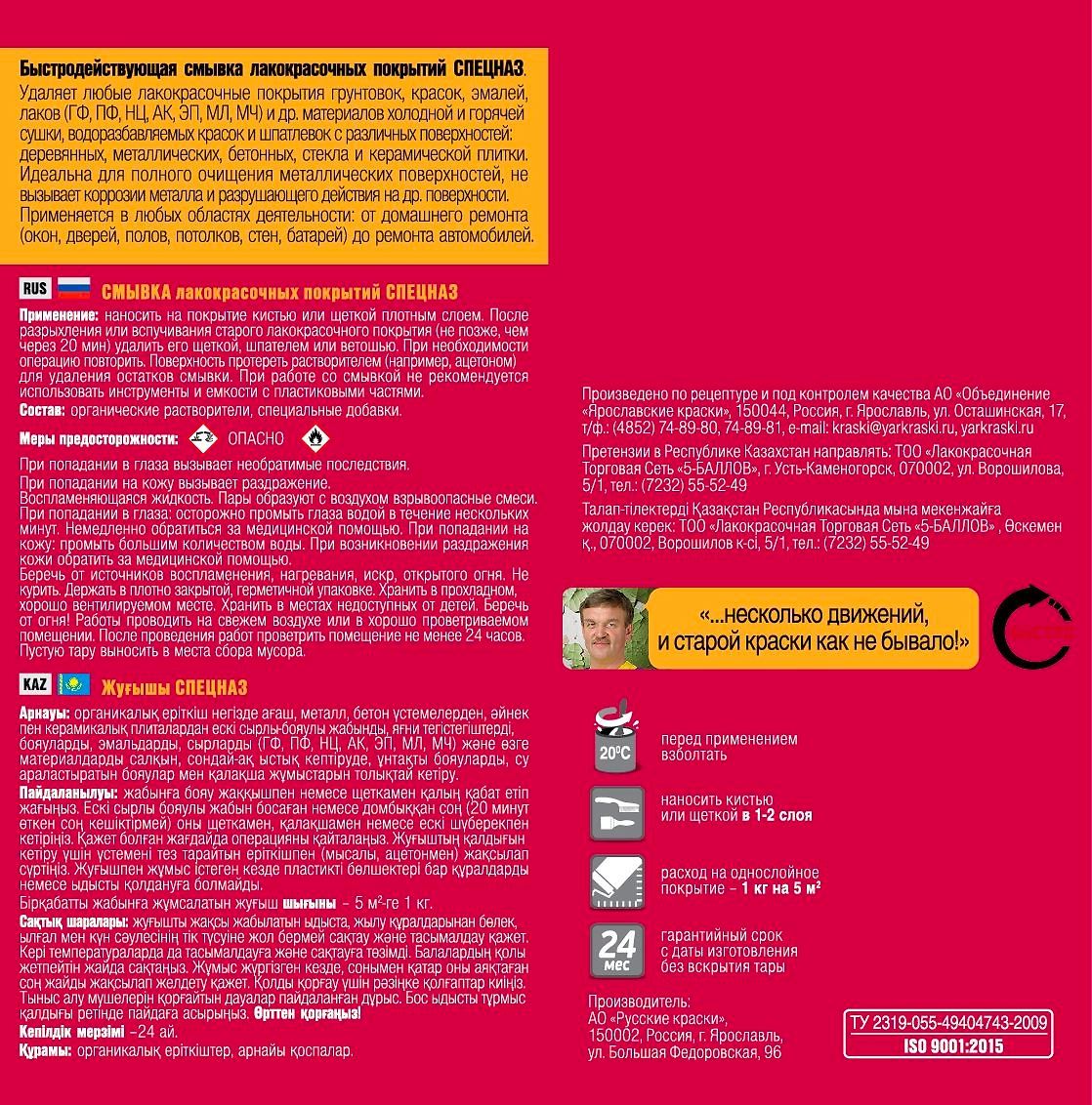 Смывка СПЕЦНАЗ предназначена для удаления лакокрасочных покрытий с деревянных, металлических, бетонных, стеклянных и керамических поверхностей. Удаляет любое лакокрасочное покрытие от элементарной масляной краски естественной сушки до профессиональной автоэмали горячей сушки, а также все виды водно-дисперсионных красок
