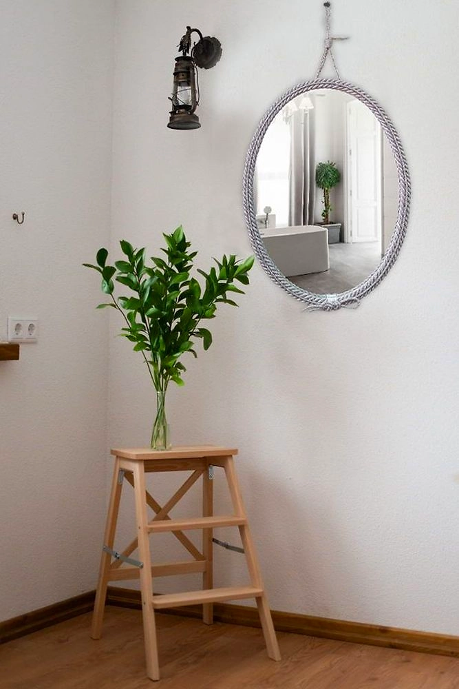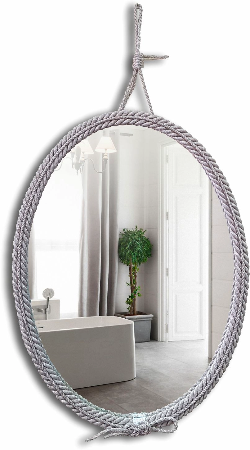 Зеркало изготовлено из зеркального полотна толщиной 4 мм. Рама зеркала выполнена из джутовой веревки. Изящная оправа придаёт зеркалу современный вид и будет гармонично дополнять интерьер.