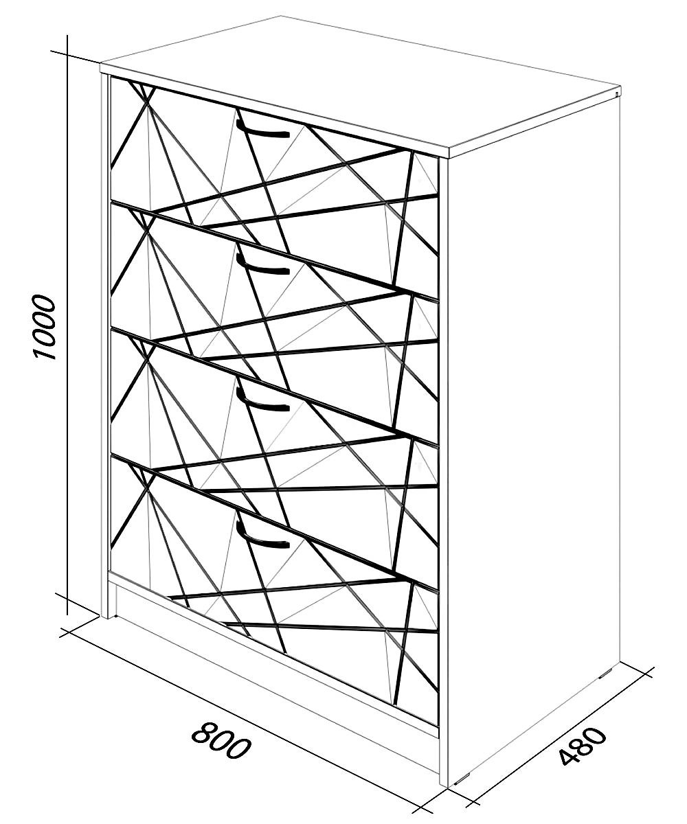 - Видимые края комода обработаны ударопрочной кромкой ПВХ – 0,4 мм, которая значительно увеличивает срок эксплуатации изделия.