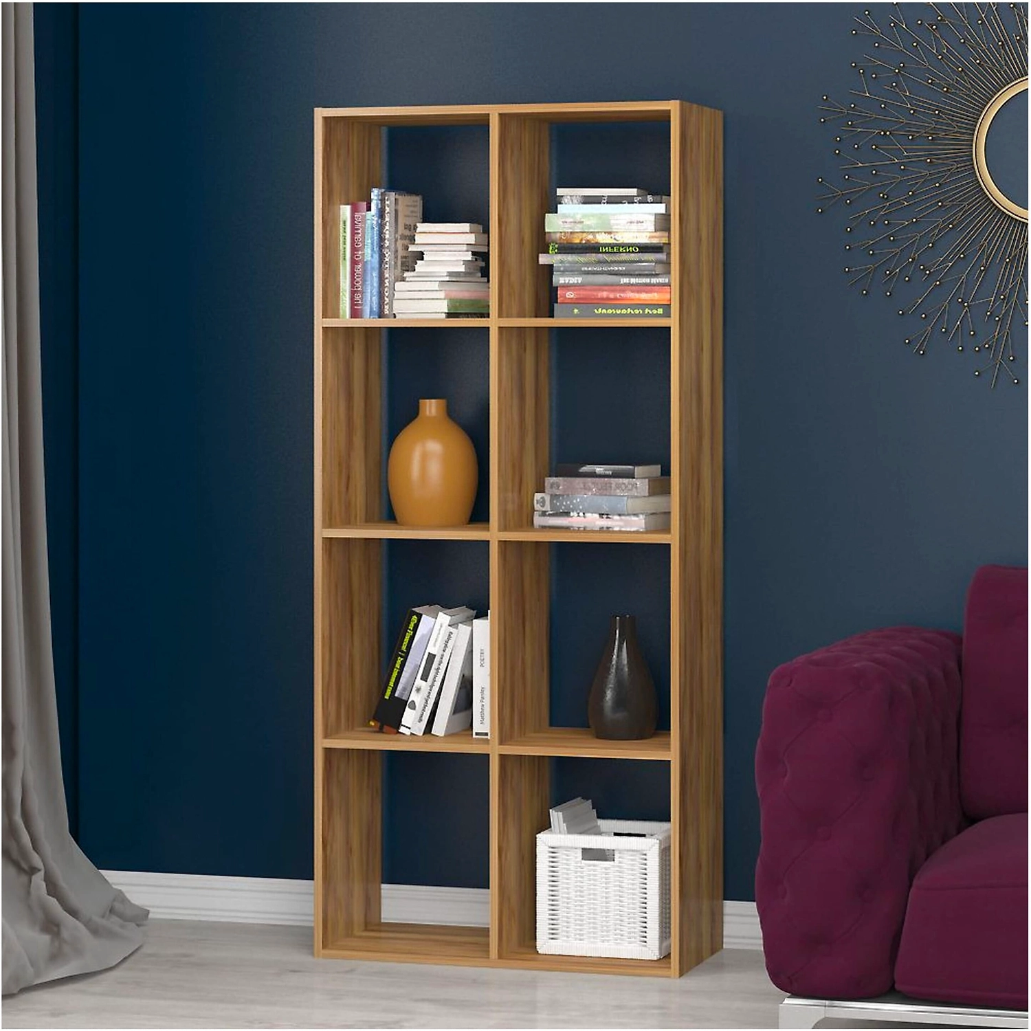 Стеллаж универсальный ФЕЛИКС ЛДСП 164х73х34 см в оттенке таксония достоверно имитирует древесную породу и создает атмосферу домашнего тепла и уюта. Восемь ячеек открытого типа организуют дополнительное пространство для хранения.