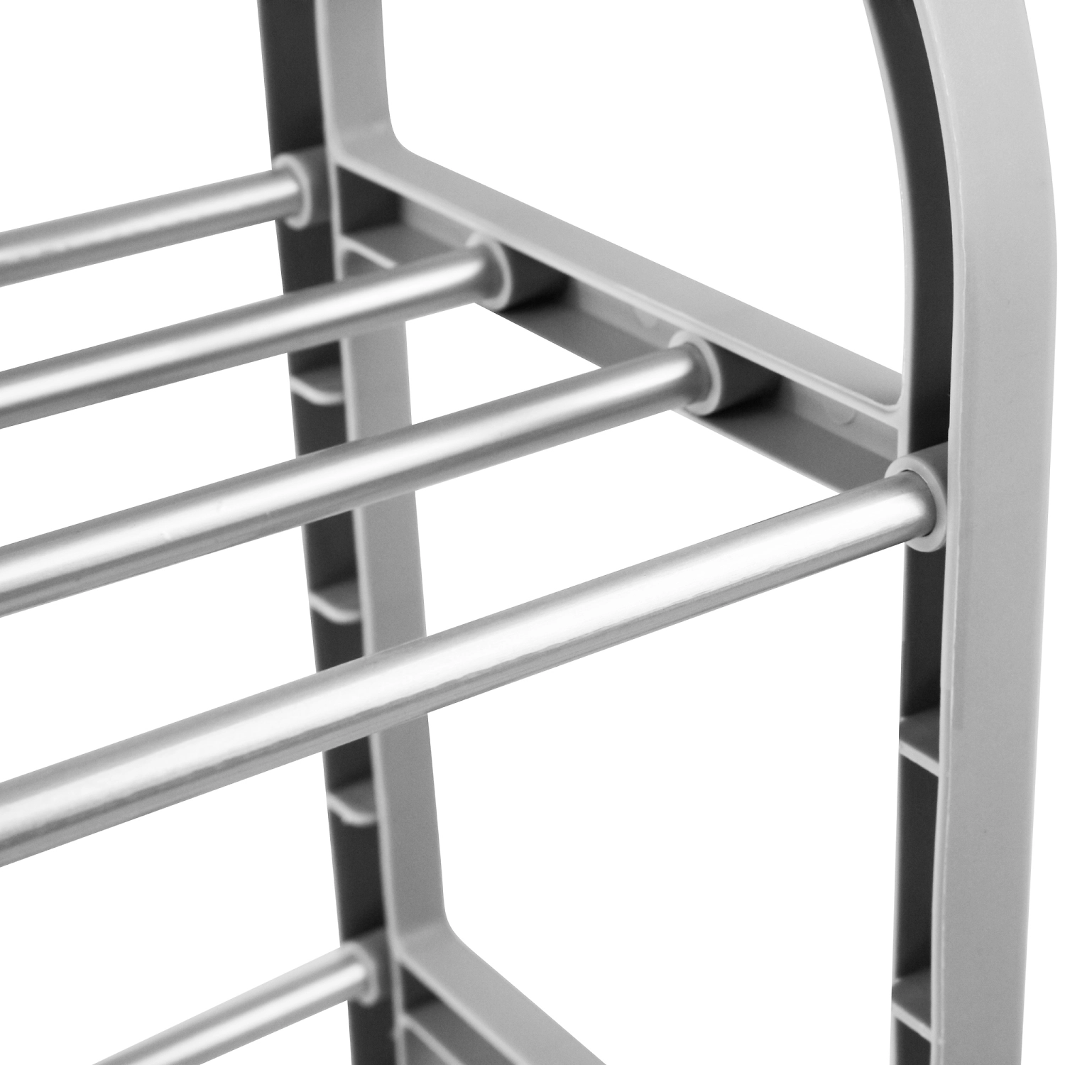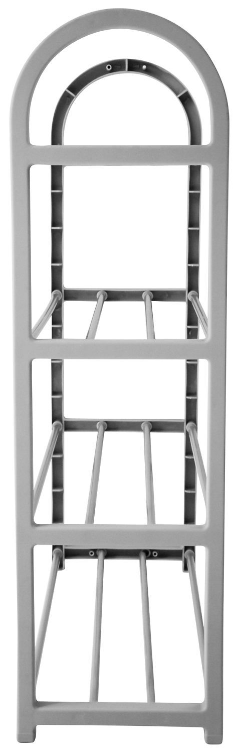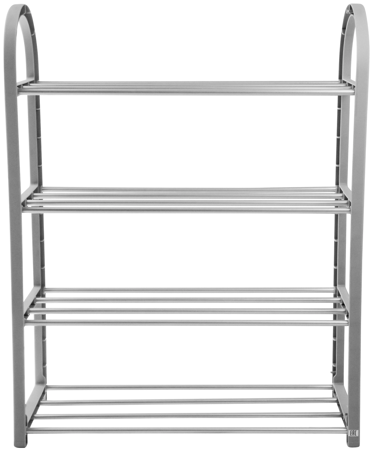 Полка представляет собой конструкцию, состоящую из боковых держателей и четырех плоскостей для размещения обуви. Данная модель имеет декоративный вид и отлично впишется в любой современный интерьер.