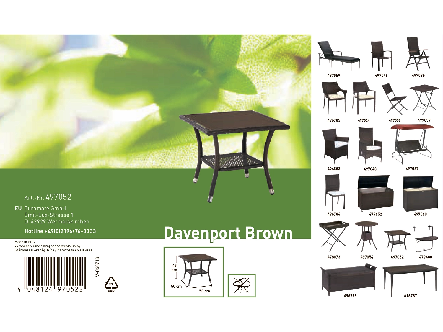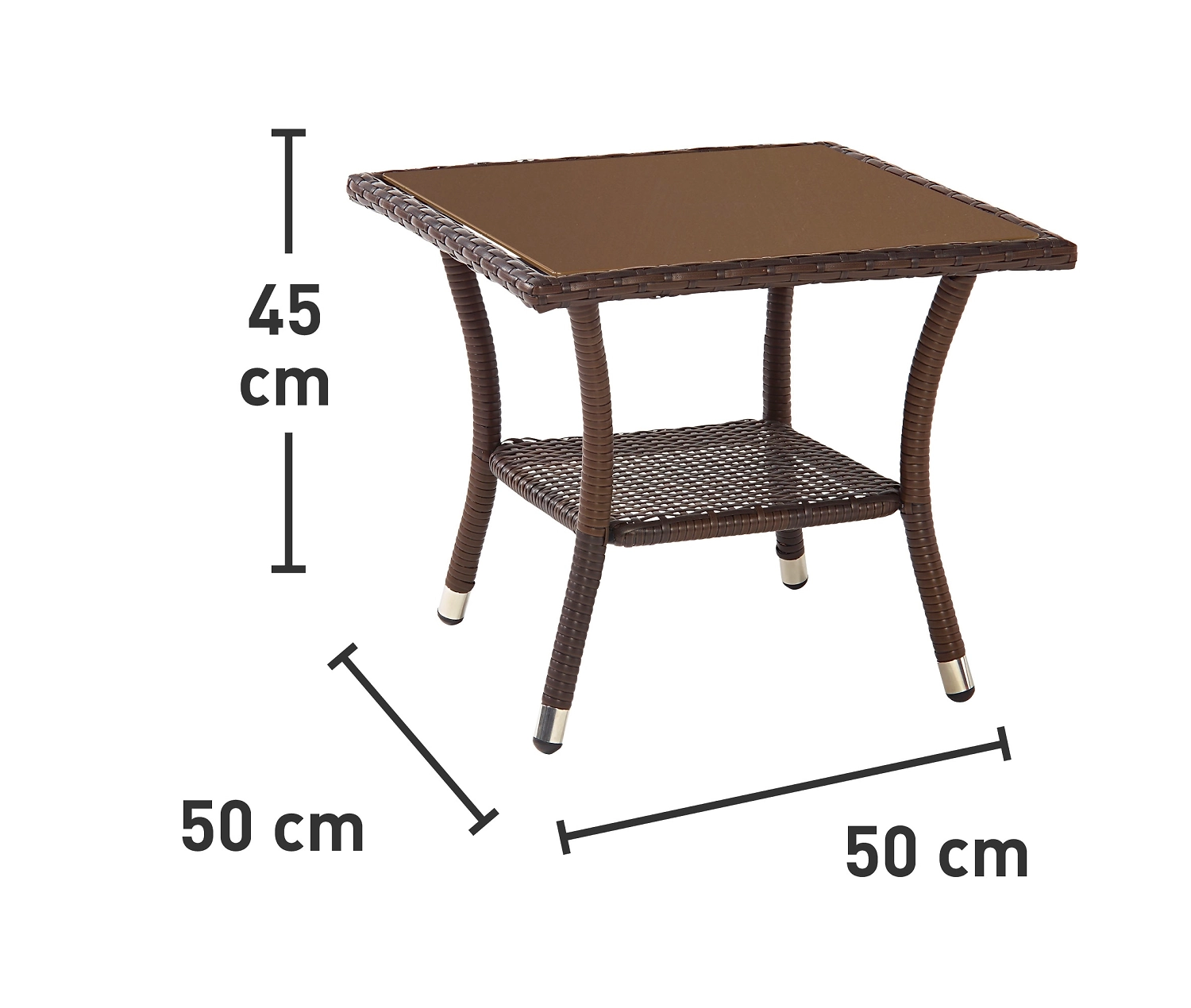 \- Столик классического темно-коричневого цвета прекрасно гармонирует с любым садовым комплектом.