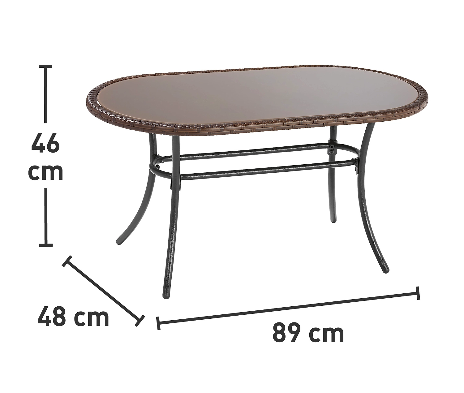 Стол Fazanda имеет стальной каркас и столешницу из тонированного стекла с оплеткой из искусственного ротанга, удобен и практичен в использовании.