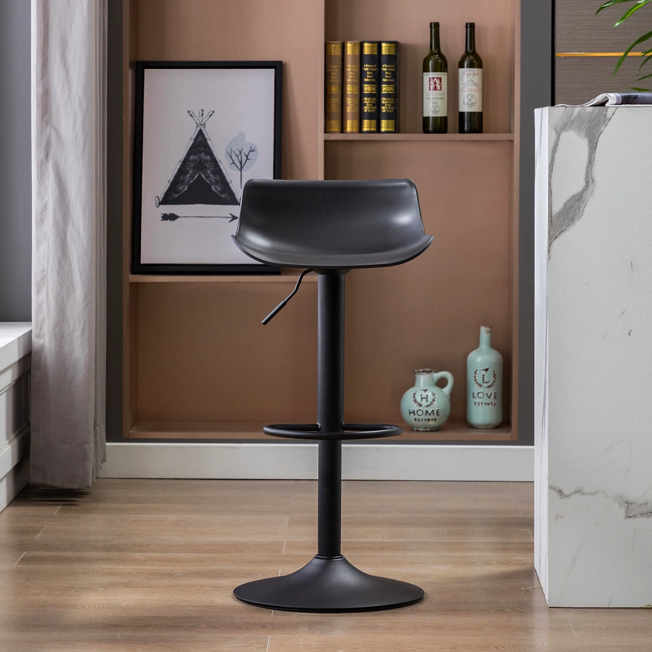 Стул барный черный оснащен прочной телескопической ножкой с устойчивым широким основанием, имеет эргономичное пластиковое сиденье.