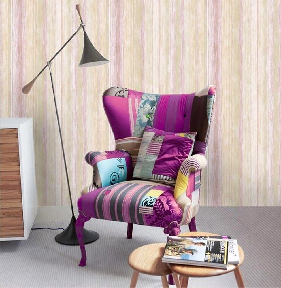 Обои в бежевой цветовой гамме с вкраплениями сиреневых и розовых оттенков - прекрасный вариант для спальни и гостиной с простой и лаконичной обстановкой.