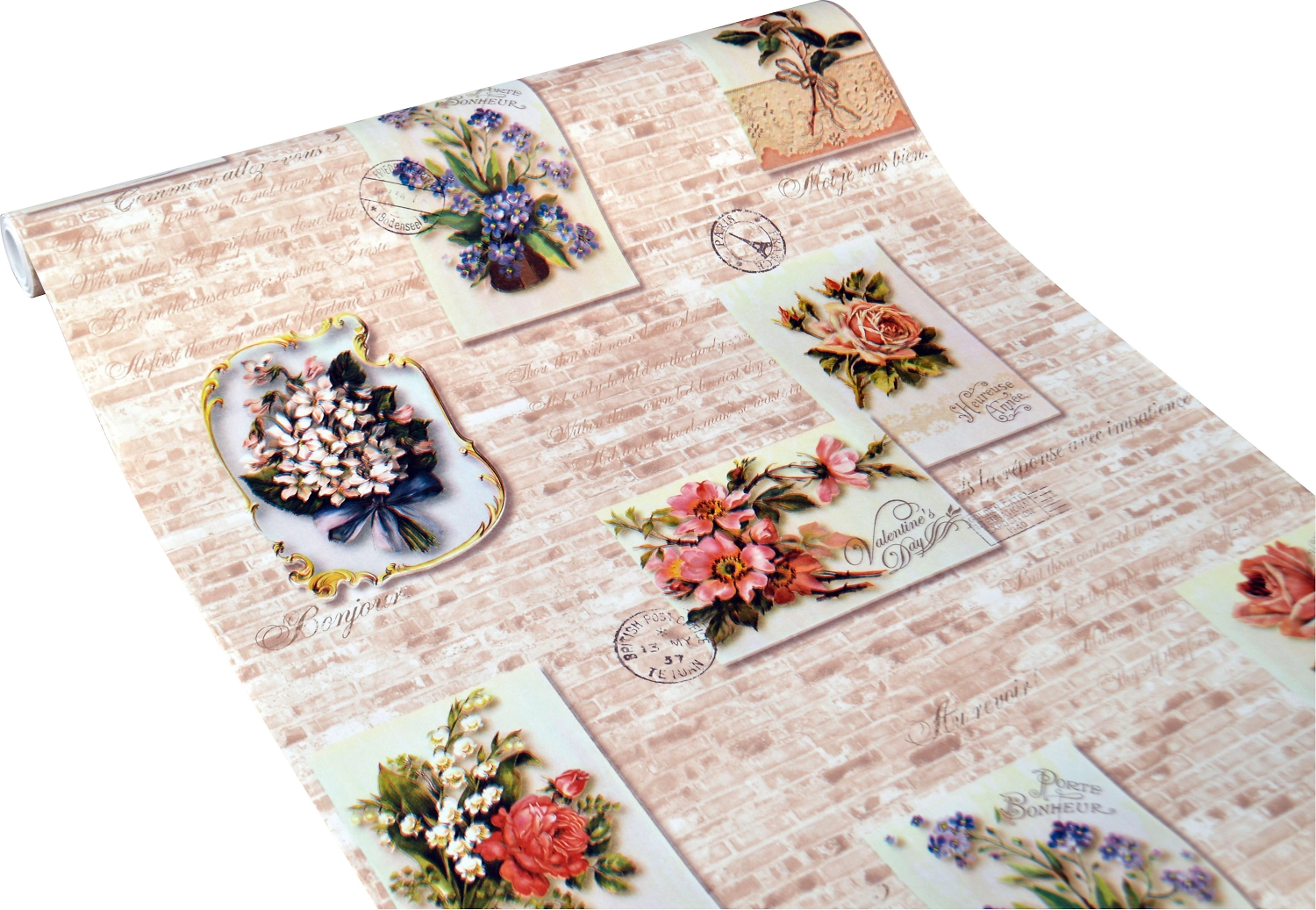 Стильные и необыкновенные обои Саратов станут эффектным дополнением интерьера кухни, прихожей или небольшой гостиной. На кирпичной стене изображены открытки с нежными цветами.