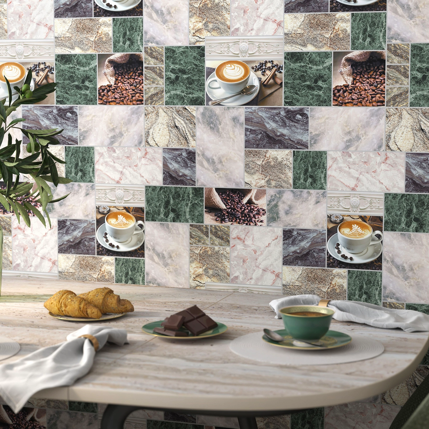 Бумажные обои Мокко 62617 зеленые 0,53х10 м