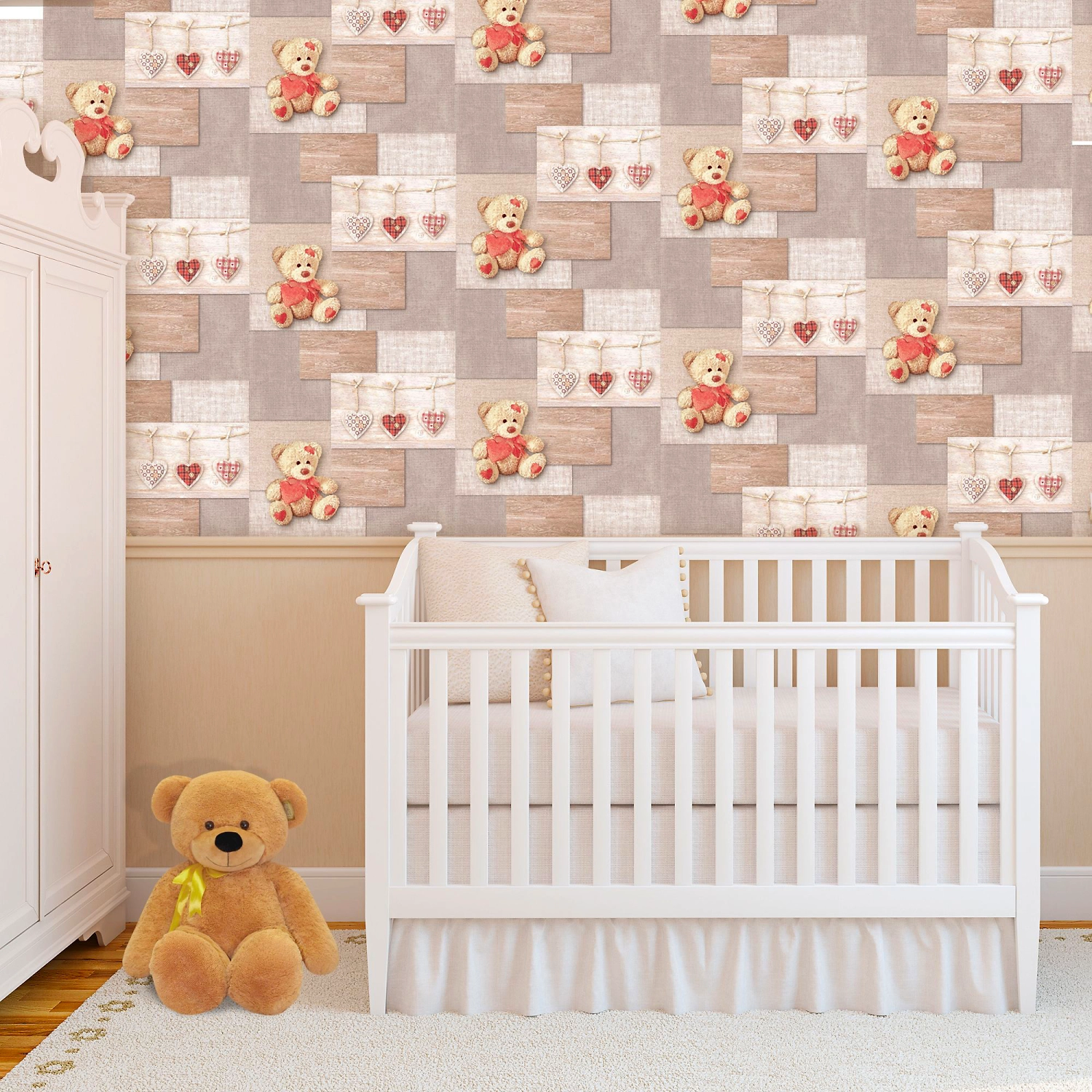 Многослойные бумажные обои Тэдди дополнят интерьер в детской комнате. Легко наносятся на поверхность, маскируя мелкие трещины и неровности. Отличаются повышенной прочностью, устойчивостью к влаге, воздействию солнца, перепаду температур и различного рода механическим повреждениям. Дуплексные обои пропускают воздух, что позволяет избежать возникновения грибка на стенах.