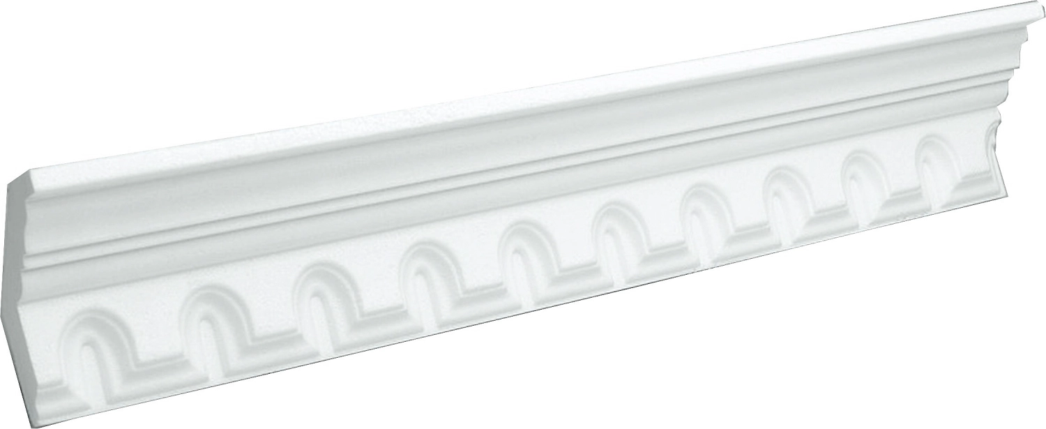 Плинтус потолочный инжекционный из пенополистирола делает переход от стены к потолку более гармоничным, закрывает неровные стыки между стеной и потолком.