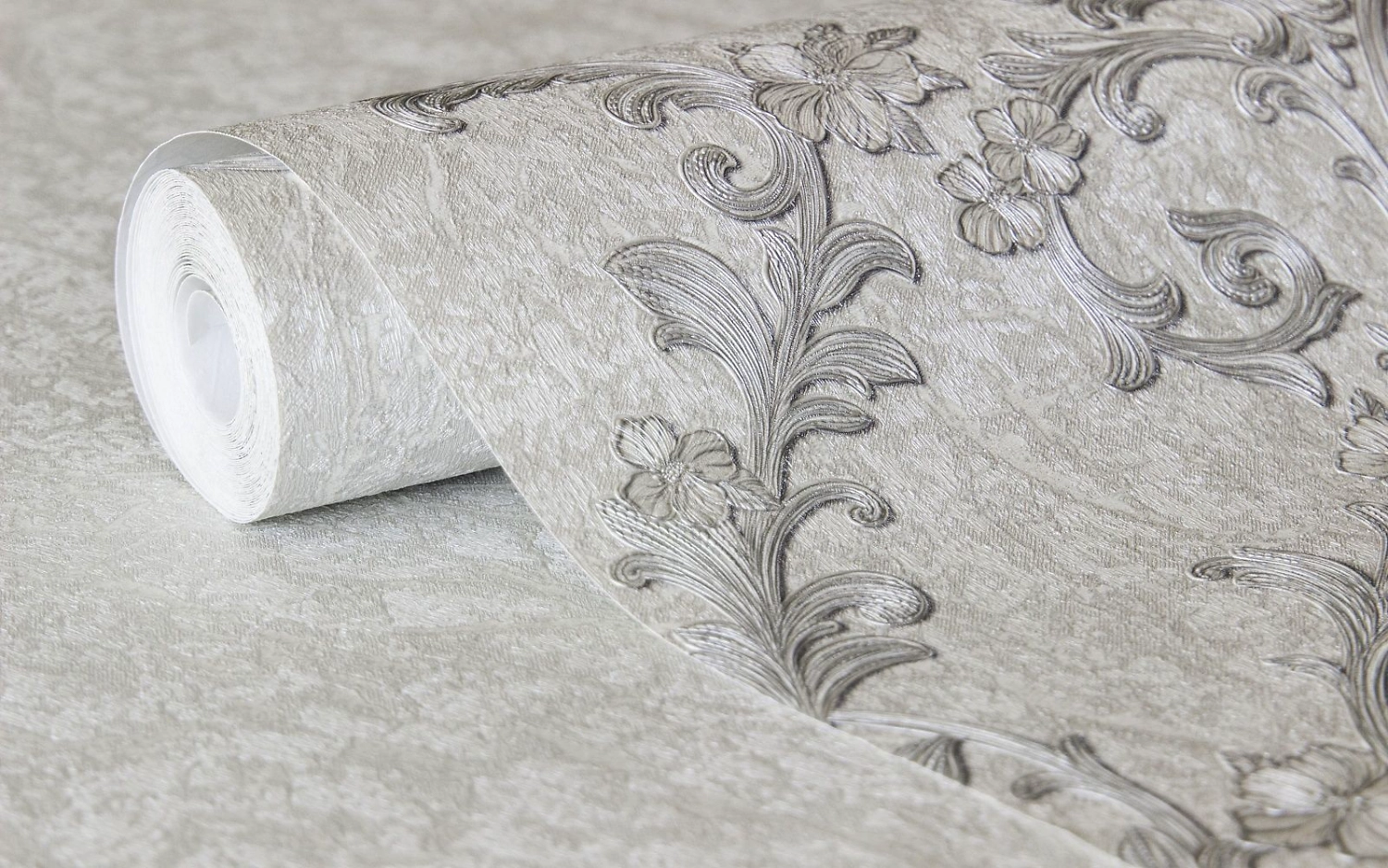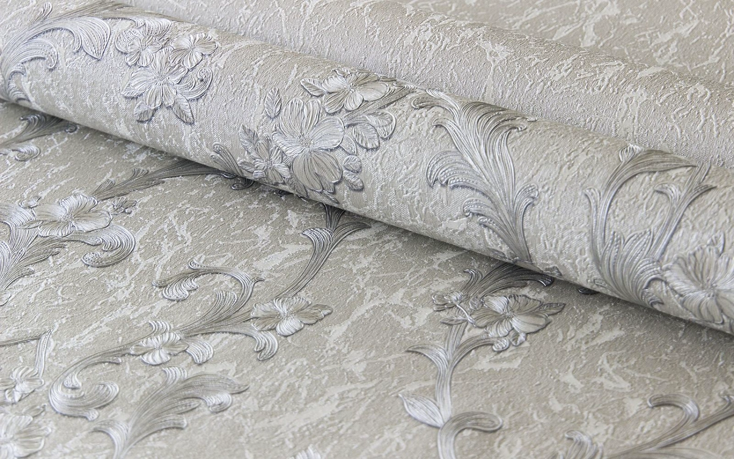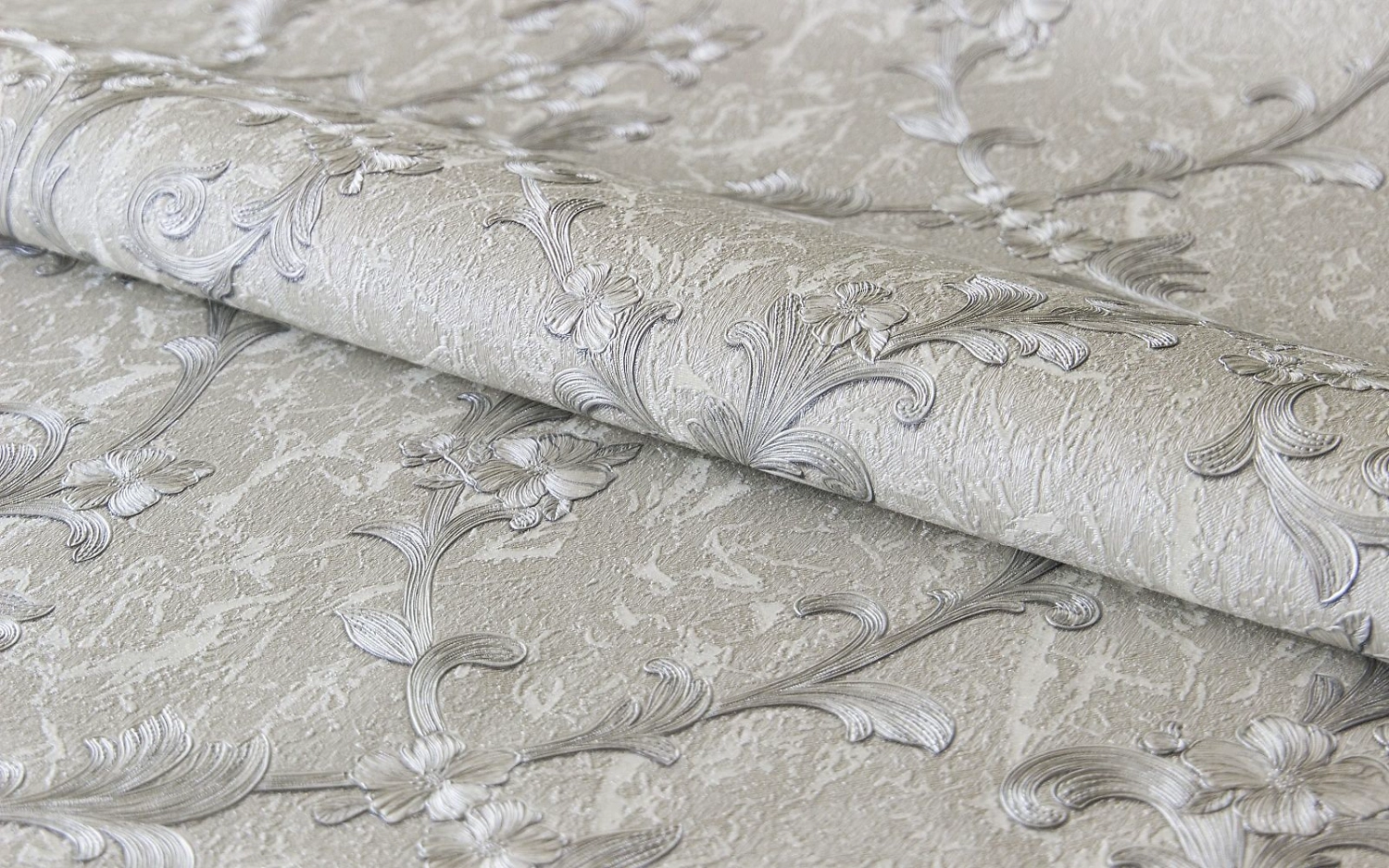 Нежные и элегантные обои с растительным орнаментом создают в помещении уютную и романтическую атмосферу. Ярко выраженный рельеф рисунка напоминает вышивку на гобеленовом полотне, что придает покрытию схожесть со старинными текстильными обоями.