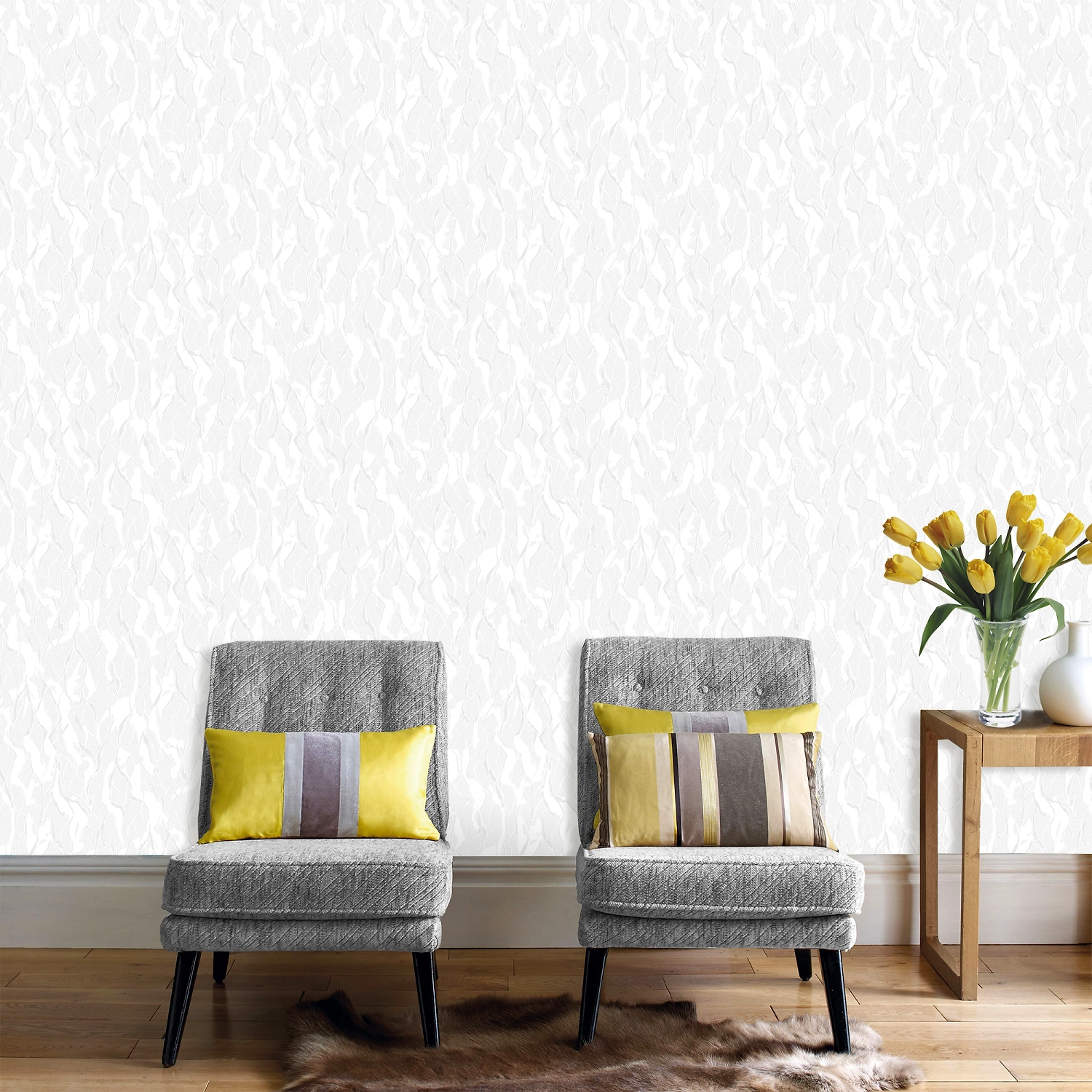 Обои виниловые, белого цвета, предназначены под покраску. Они прекрасно выглядят после наклеивания на стену, позволяют создать оригинальный и стильный дизайн в помещении. Имеют легкий асимметричный рисунок, который не требует совмещения при нанесении. Прекрасно смотрятся в различных стилях и дизайнах. Декоративный слой обоев выполнен из вспененного винила, что придает обоям легкость и практичность. При помощи этих обоев можно легко замаскировать незначительные огрехи стеновых поверхностей.