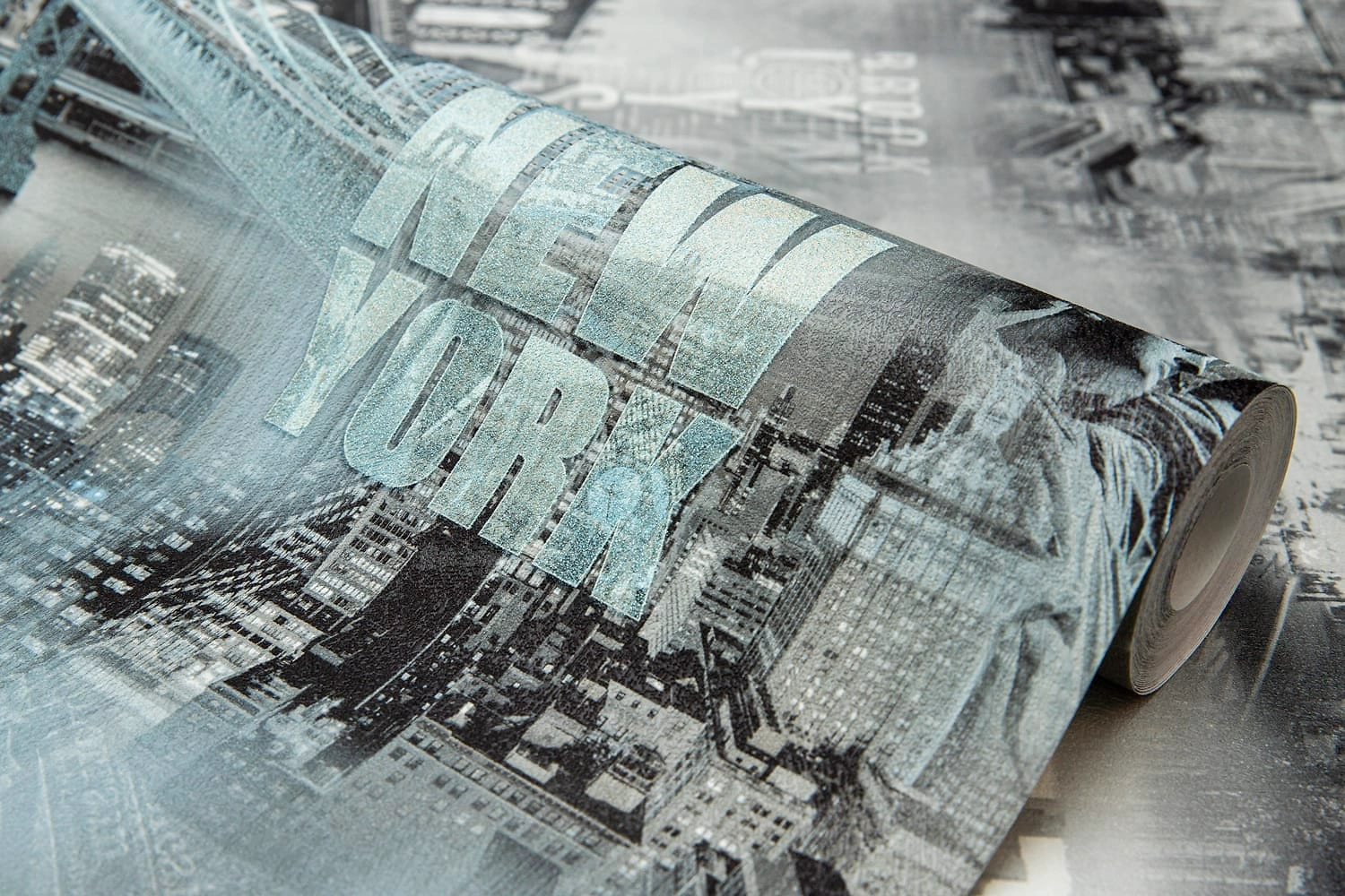 Атмосфера Нью-Йорка с его грациозными небоскребами, бизнес-центрами и такими достопримечательностями, как бруклинский мост и Статуя Свободы прекрасно вписывается в интерьер в урбанистическом стиле. Обои America 168453-17 - отличный выбор для свободных духом, творческих людей.