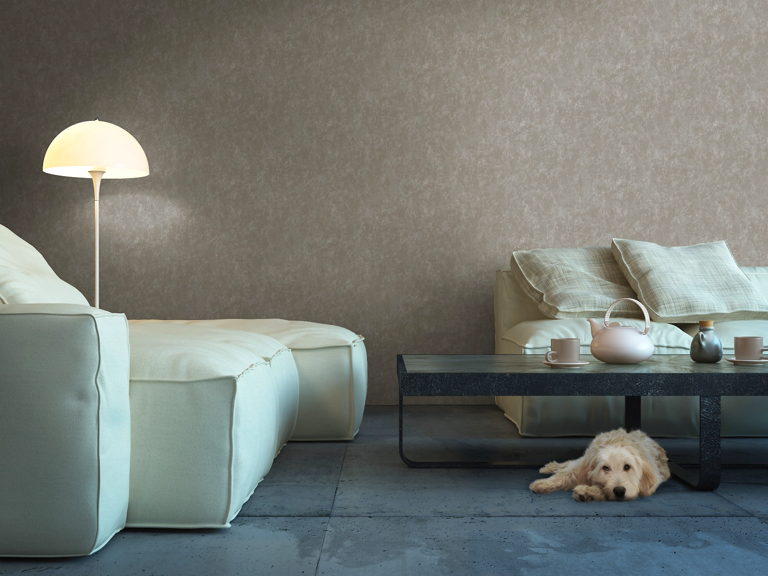 Супермоющиеся обои, стилизованные под декоративную штукатурку, - удачное решение для создания модного и практичного пространства. Коричневые оттенки придают интерьеру элегантную строгость, добавляют в общую атмосферу комнаты ощущение уюта и гармонии.