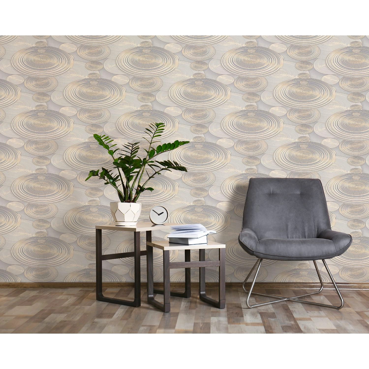 Коллекция обоев Effect - это классический дуэт из мотива и фона. Эффектным акцентом мотива выступают диски схожие с галактическими.