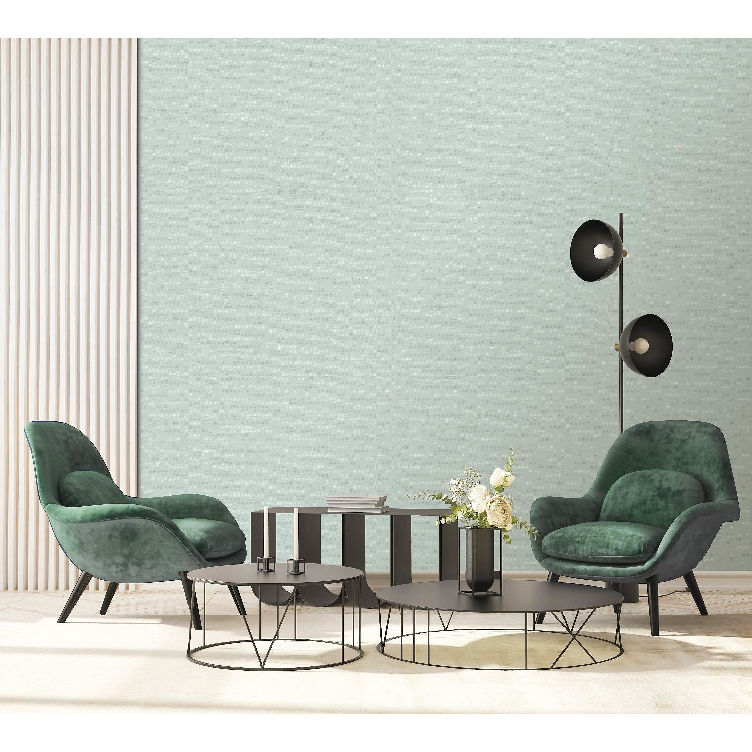 Коллекция обоев Mayfair - это классический дуэт из мотива и фона. В мотиве - плавные изогнутые линии из металлика устремляются ввысь, формируя изящный рисунок.