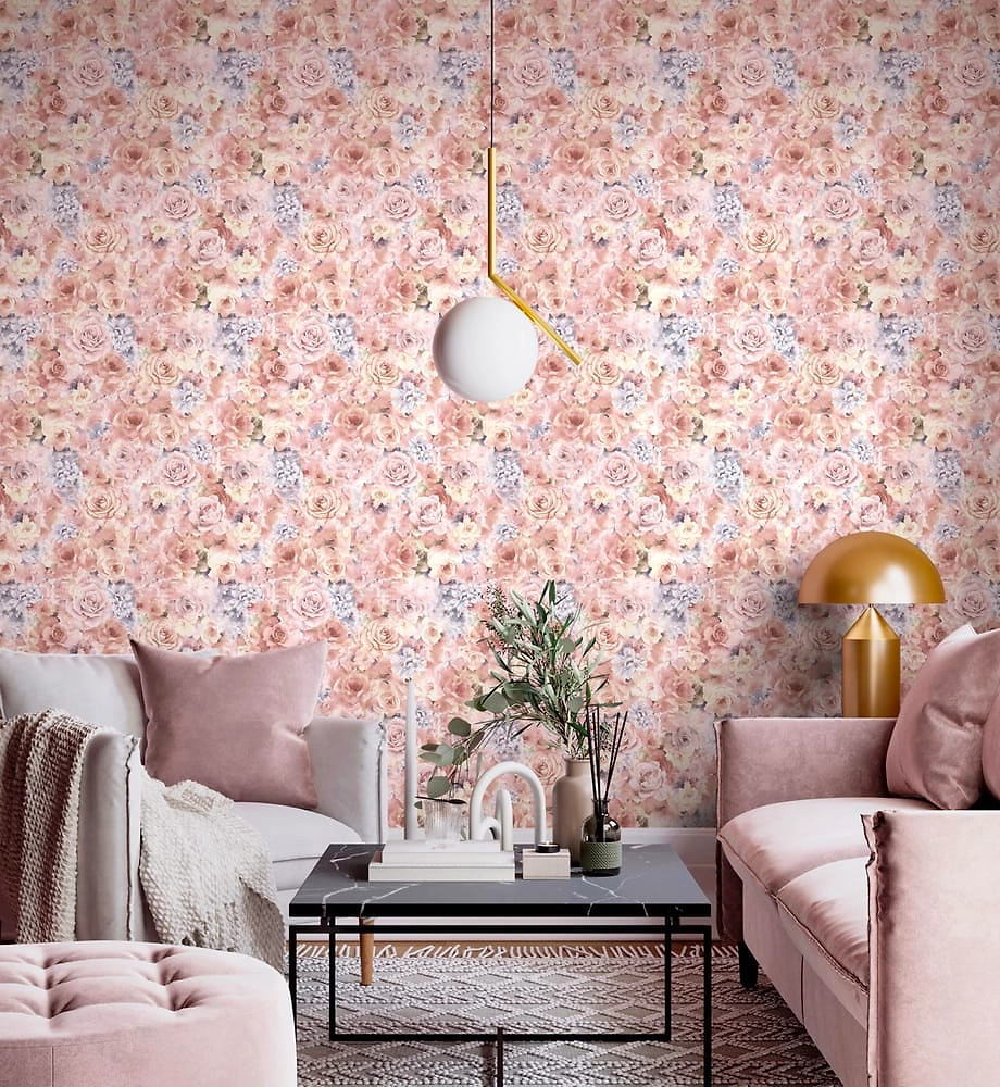 Виниловые обои AnturAGe Fiore 168462-15 1,06x10,05 м розово-персиковые