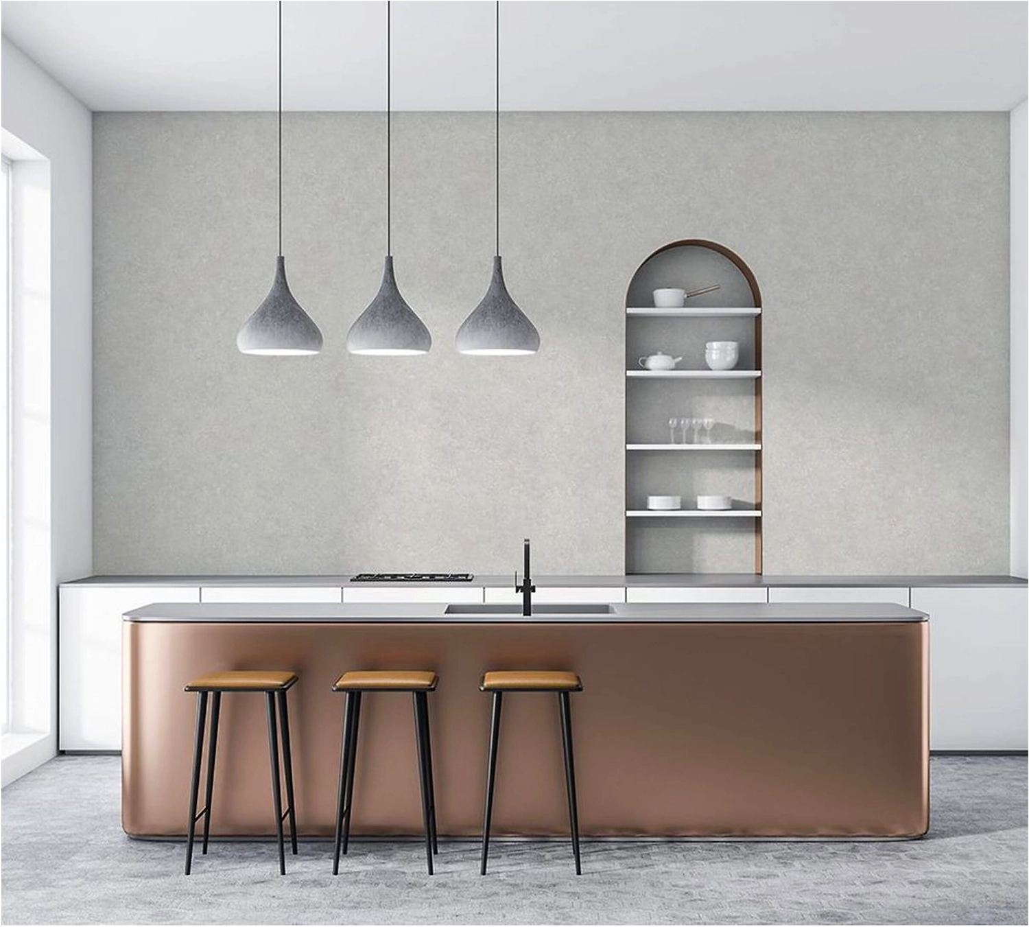 Обои "под штукатурку" - универсальный вариант для различных интерьерных стилей. Светлые стены делают помещение визуально более чистым, свежим и просторным.