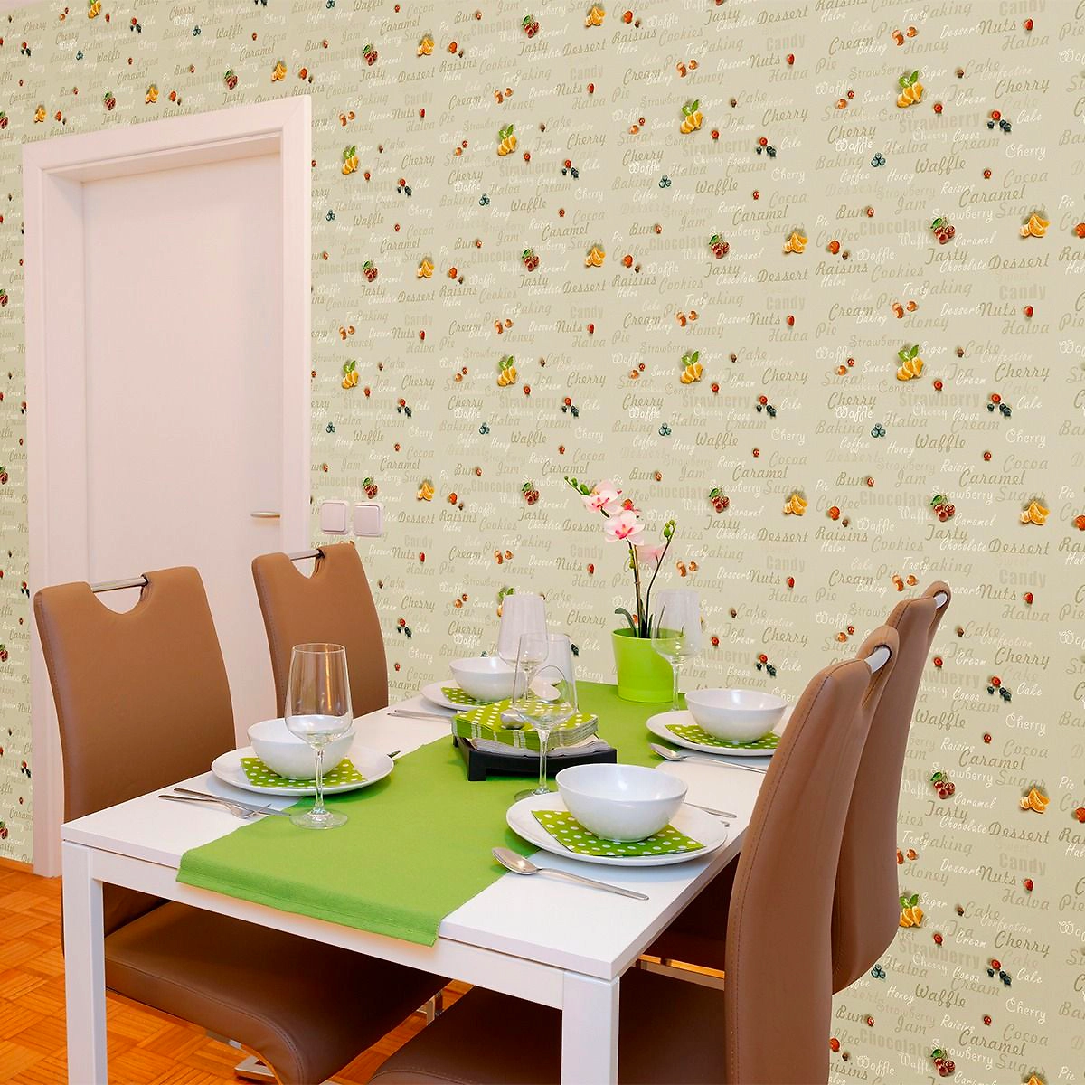 Виниловые обои Elysium Сладости 96622 зеленые 0,53x10 м