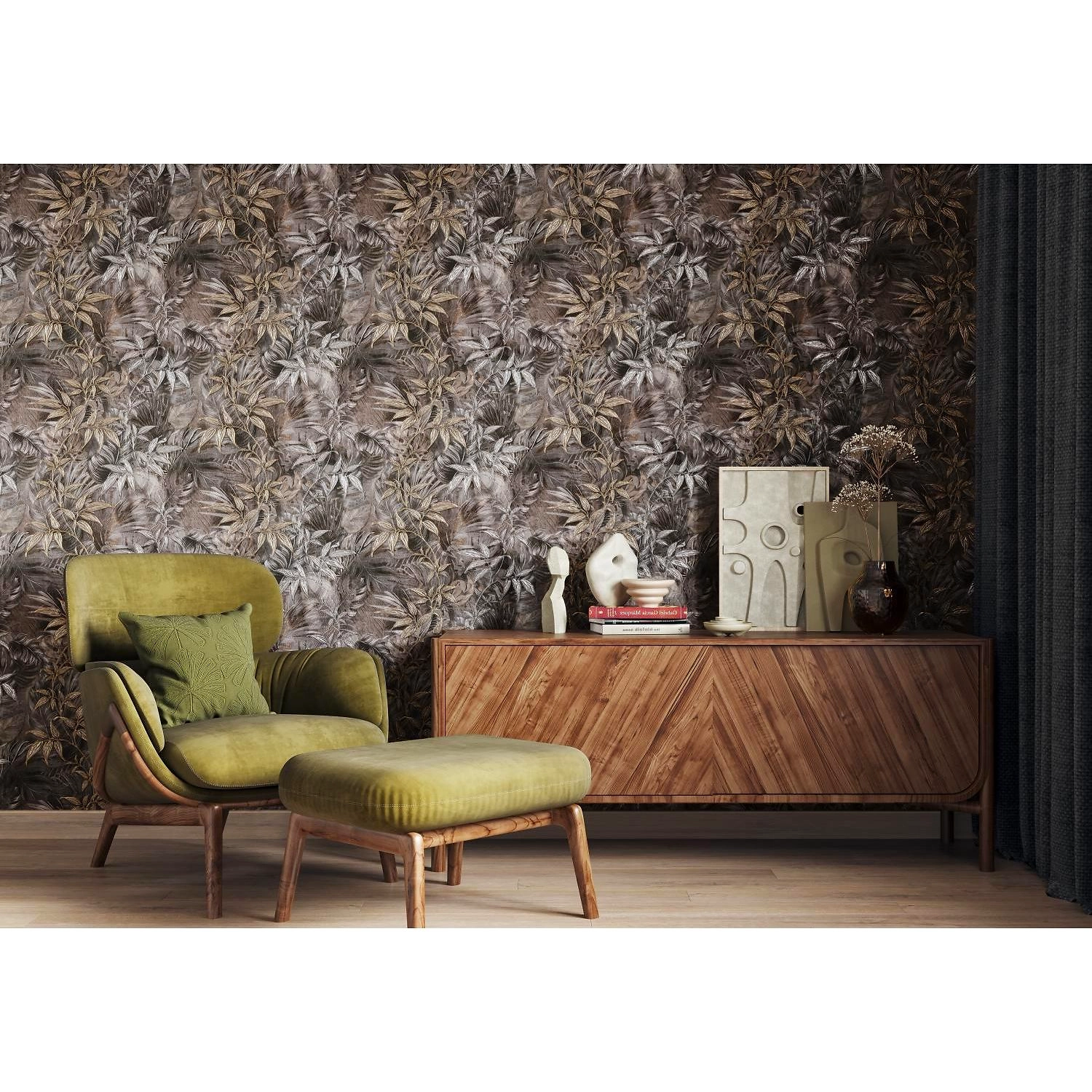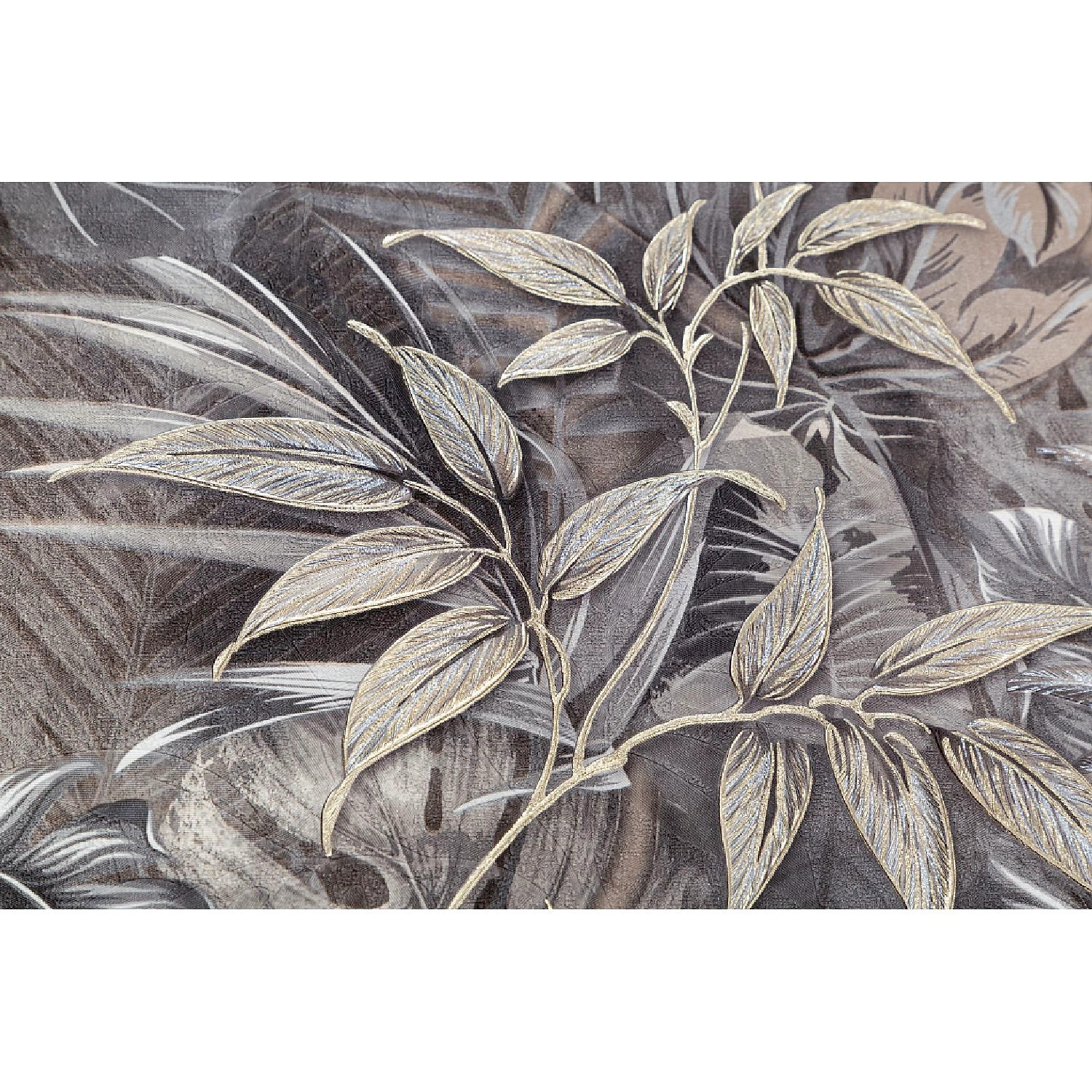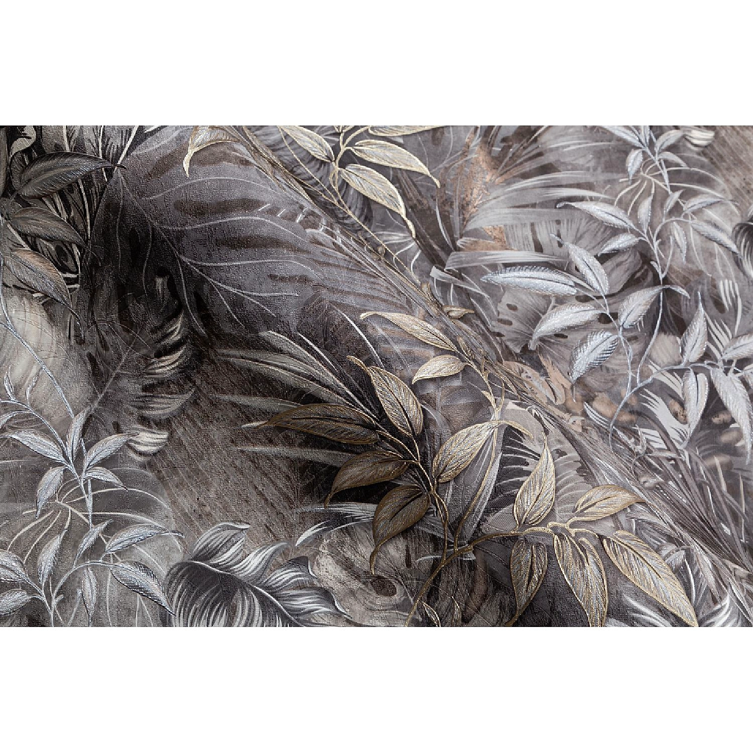 Главный мотив коллекции Bionica напоминает об удивительном мире джунглей с лианами, пальмами и дикорастущими папоротниками. Перламутровые вставки серебрятся на рельефных листьях словно блестящие капельки утренней росы. Пару ему составляет оригинальный фон в виде текстильной штукатурки – материала, сочетающего модную текстуру декоративной штукатурки с натуральным текстилем.