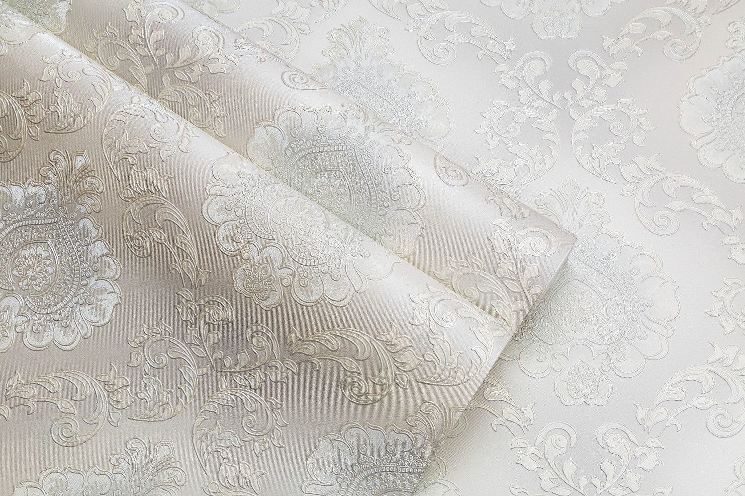 Основой мотива обоев стали филигранные дамаски с этнической ноткой. Их оригинальный рисунок выполнен рельефной металлизированной обводкой на фоне атмосферного радужного градиента. Такое эклектичное смешивание традиционного и современного стиля становится новым прочтением классического узора.