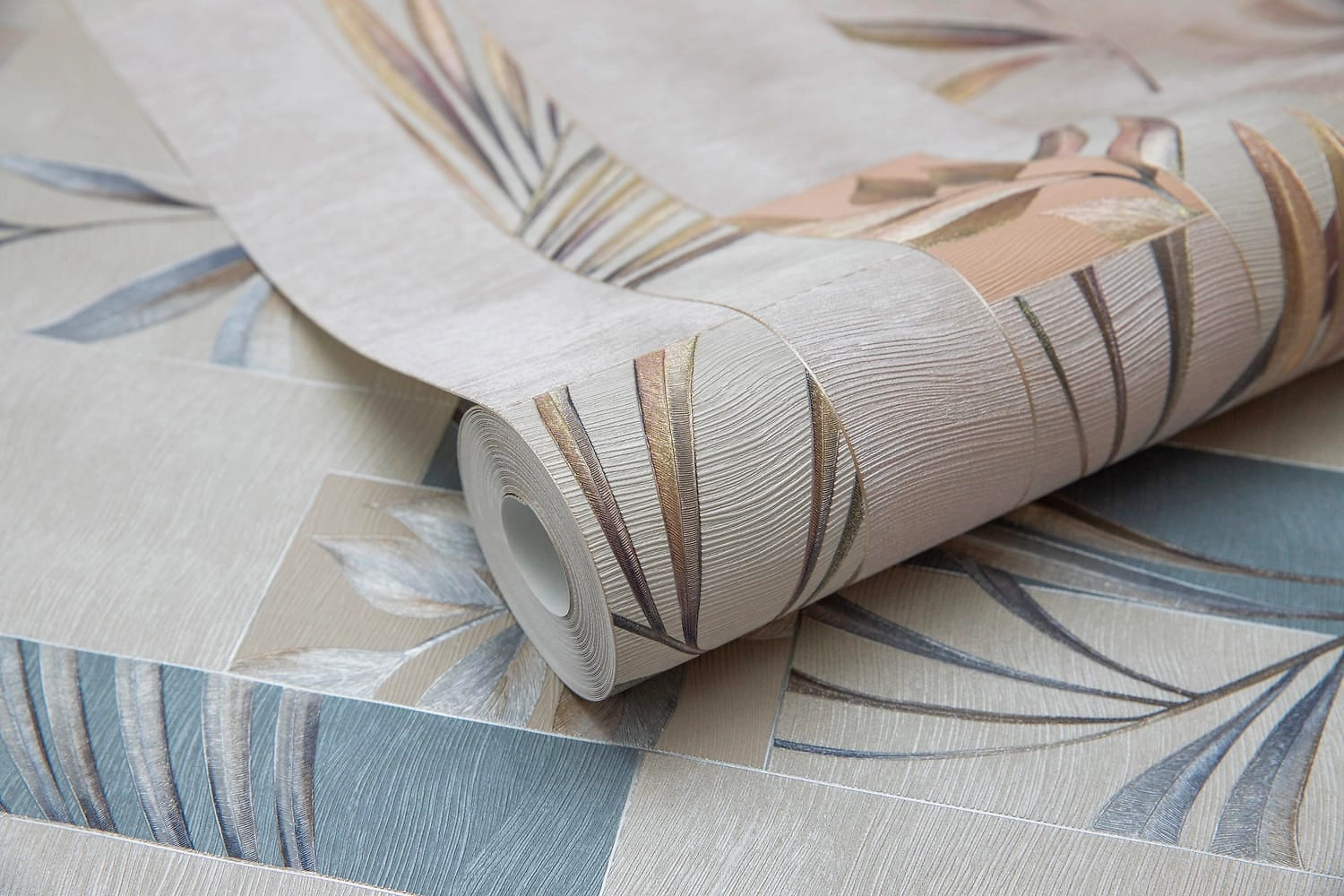 Обои горячего тиснения имеют поверхность из винила и основание из флизелина. Узор выделяется за счет легких металлизированных эффектов. Дизайн и цветовое решение настенного покрытия подходят для современных и смешанных стилевых направлений.