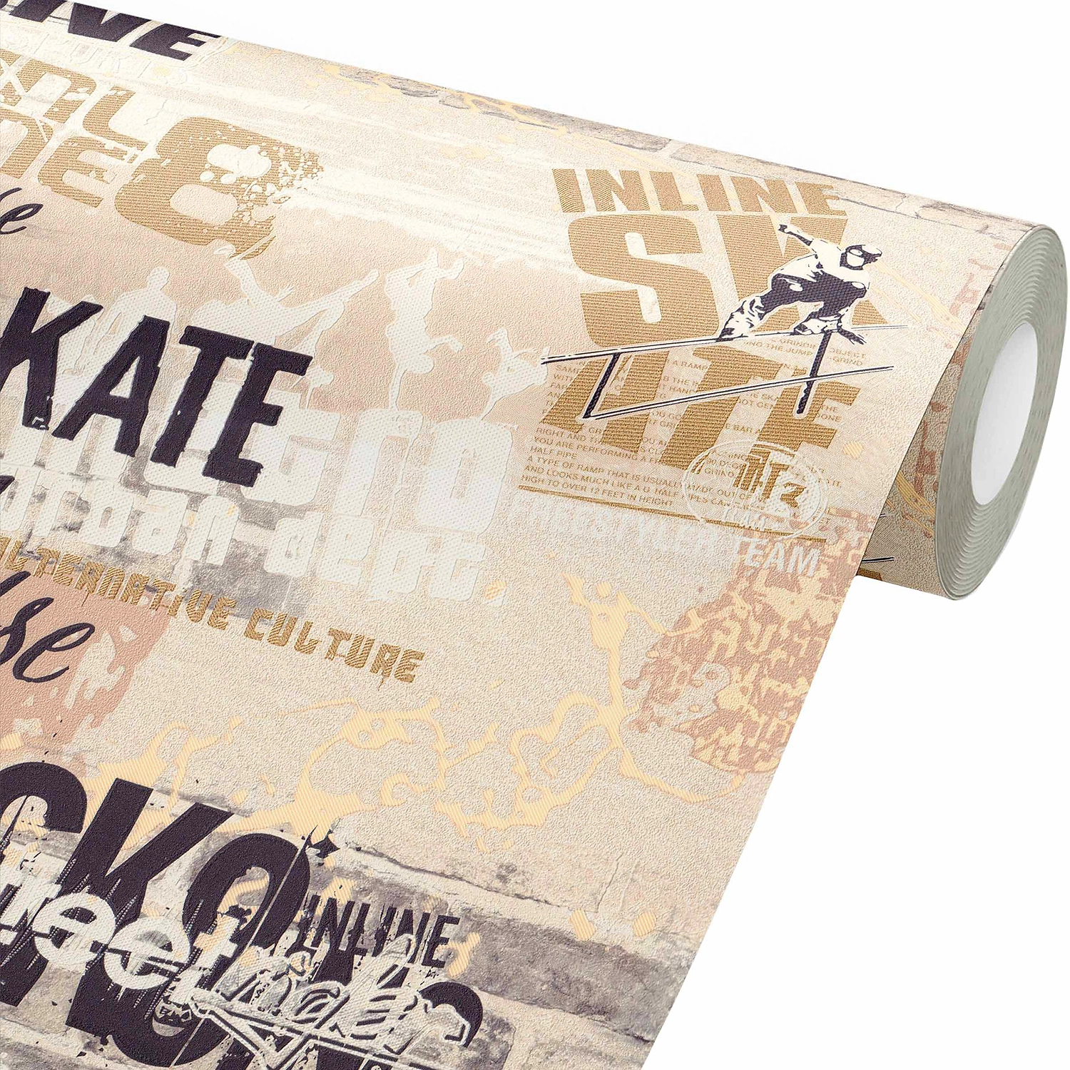 Обои имеют двухслойную структуру, состоящую из флизелинового основания и винила. Узор нанесен на полотно методом горячего тиснения, что обеспечивает ему объем и выразительность. Дизайн покрытия актуален для современных, молодежных стилей, таких как гранж, лофт, фьюжн и др.