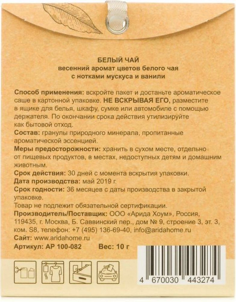 Ароматическое саше цветочный Arida Home Белый чай 10 гр