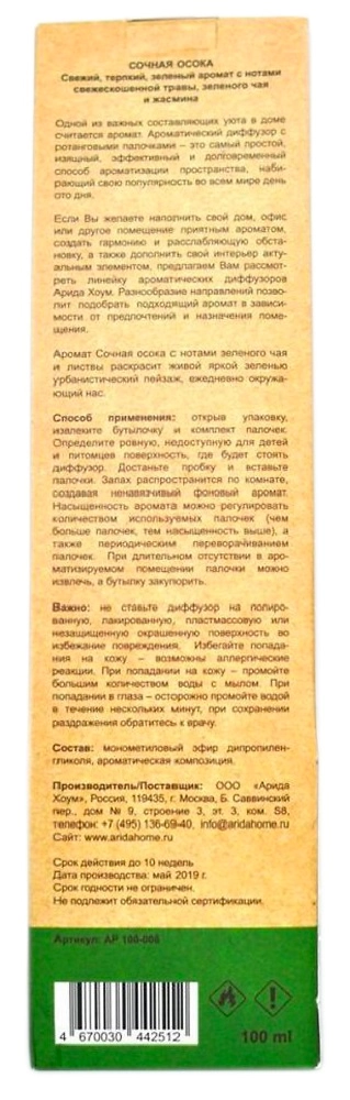 Диффузор ароматический Arida Home Сочная осока 100 мл