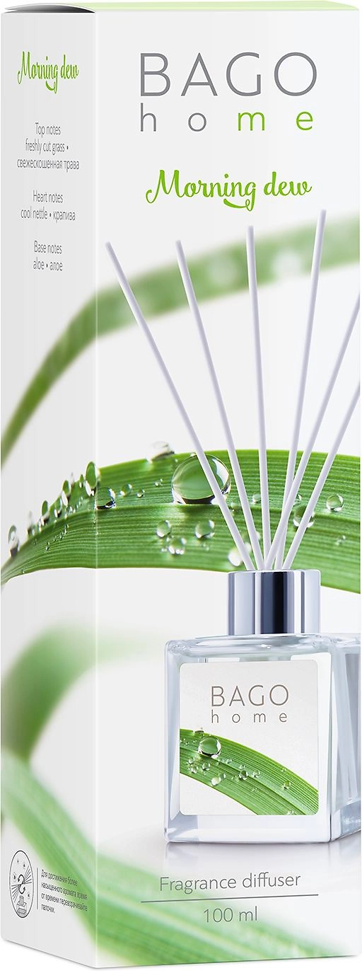 Ароматический диффузор Утренняя Роса от BAGO home щедро дарит всю чистоту и свежесть природы через аромат свежескошенной травы и влажного леса.