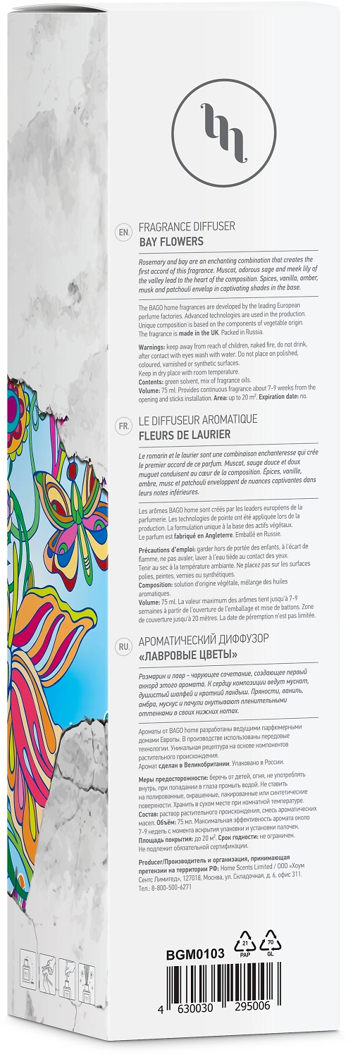 Диффузор ароматический ЛАВРОВЫЕ ЦВЕТЫ 75МЛ