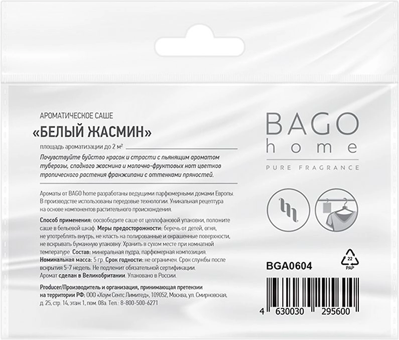 Саше ароматическое БЕЛЫЙ ЖАСМИН 10ГР