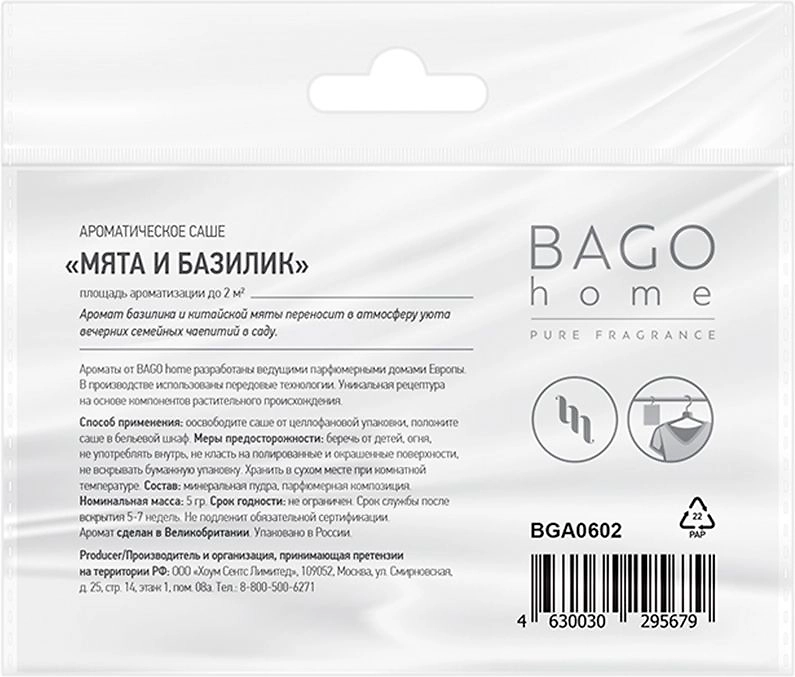 Саше ароматическое МЯТА И БАЗИЛИК 10ГР