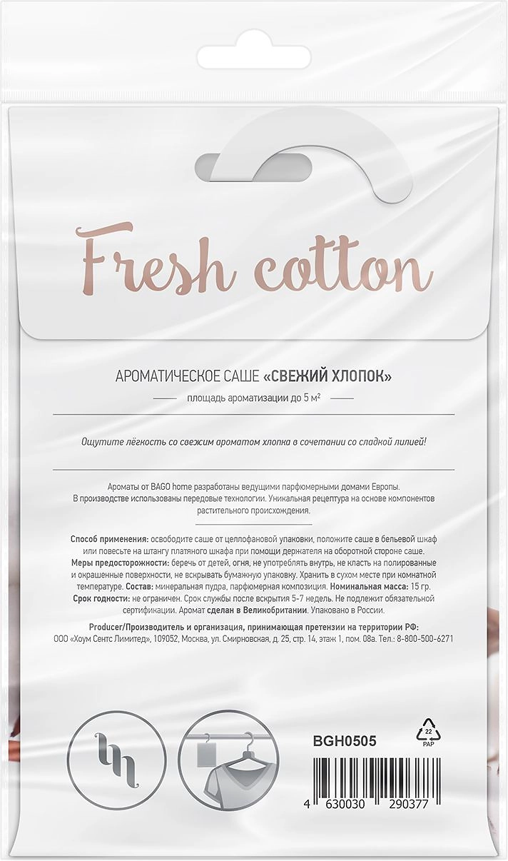 Саше ароматическое СВЕЖИЙ ХЛОПОК 18ГР
