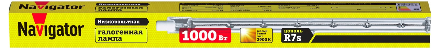 Navigator NH R7s 1000 Вт - галогенная линейная лампа с теплым дневным светом.