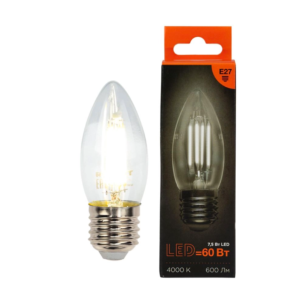 Лампа филаментная Rexant свеча CN35 7.5 Вт 4000K E27 нейтральный свет