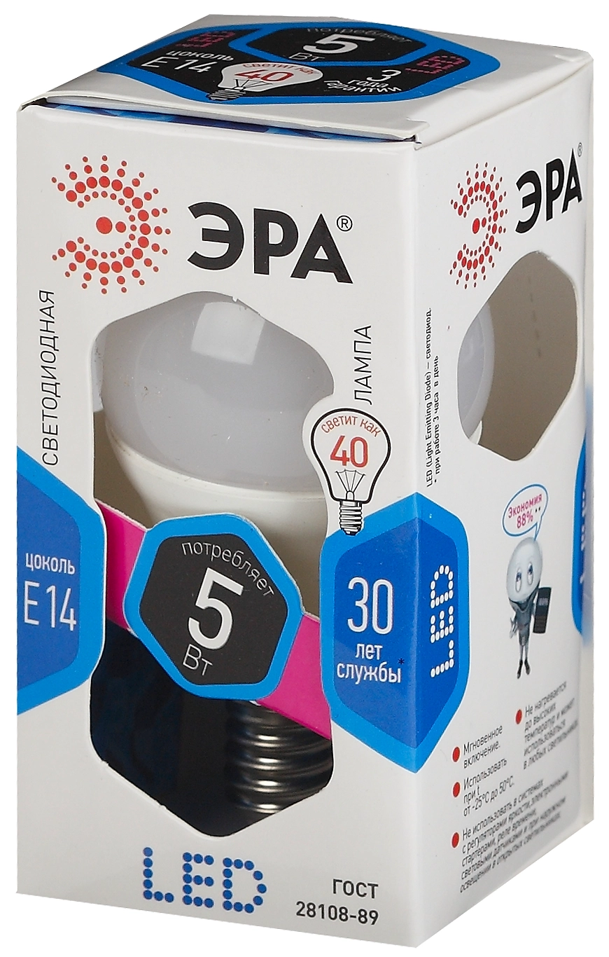 Лампа LED ЭРА стандарт 5/40 Вт Е14 шар холодный свет