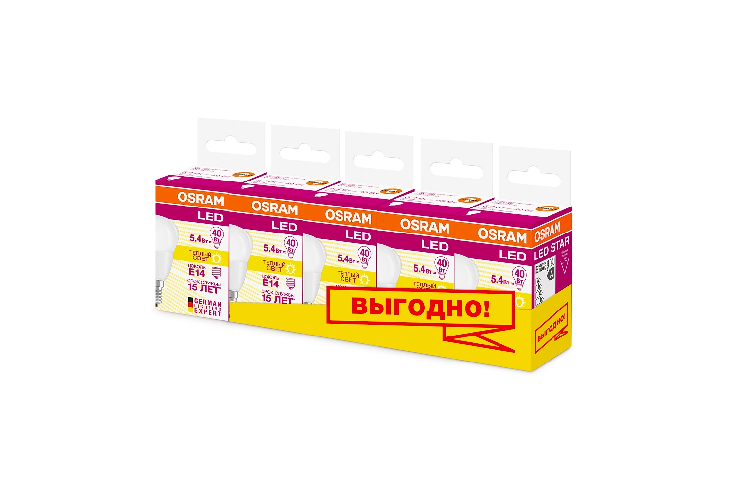 Лампа LED OSRAM 5,4 Вт Е14 шар матовый теплый свет 5 шт