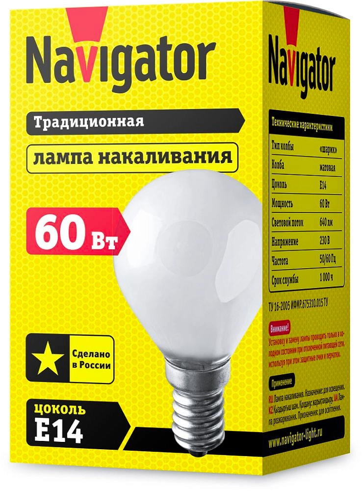 Лампа накаливания Navigator NI-C E14 60 Вт 640 лм шар