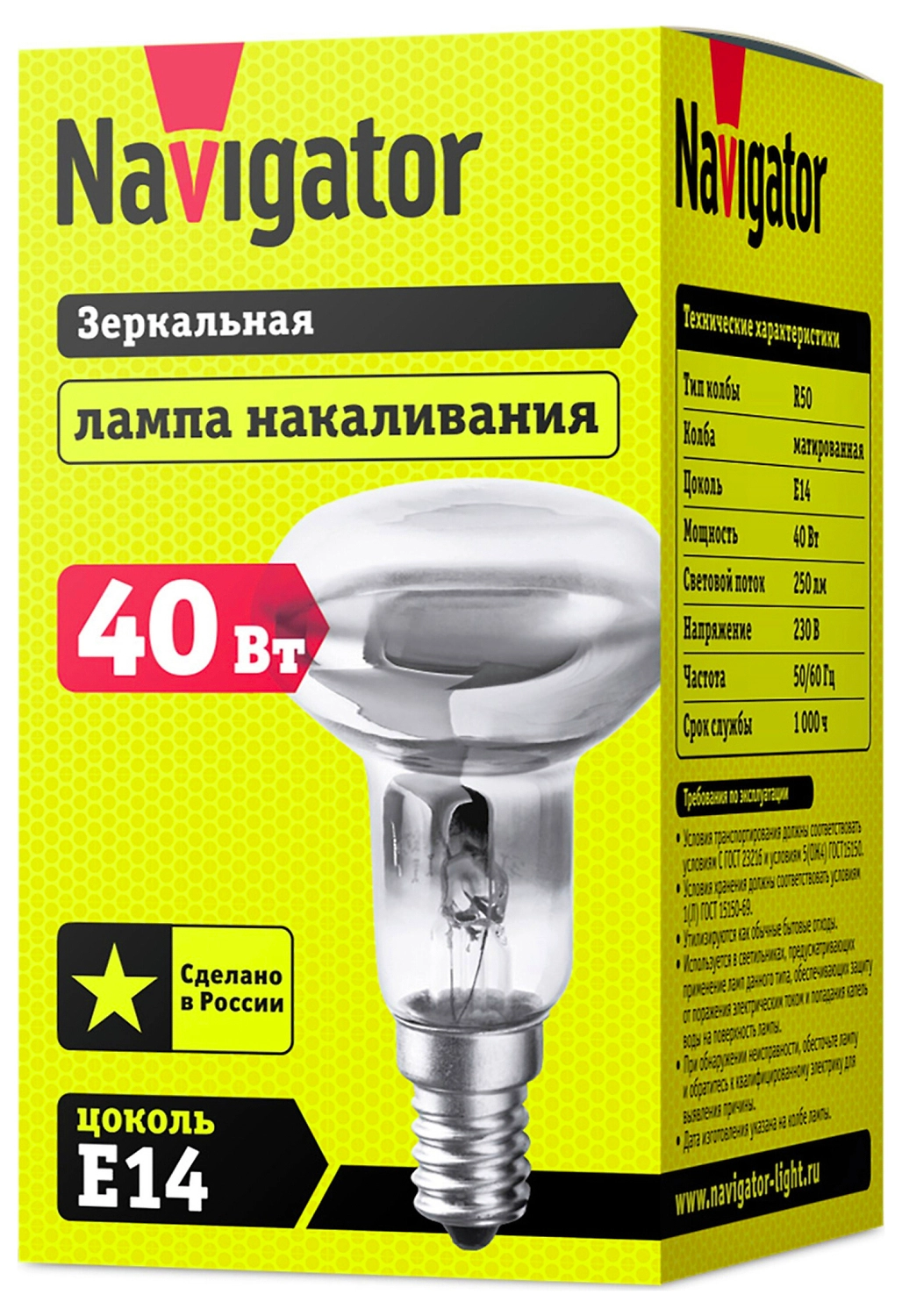 Лампа накаливания Navigator NI-R Е14 40 Вт 250 лм гриб