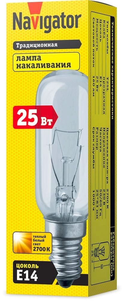Лампа накаливания Navigator NI-T25L E14 25 Вт 160 лм трубка
