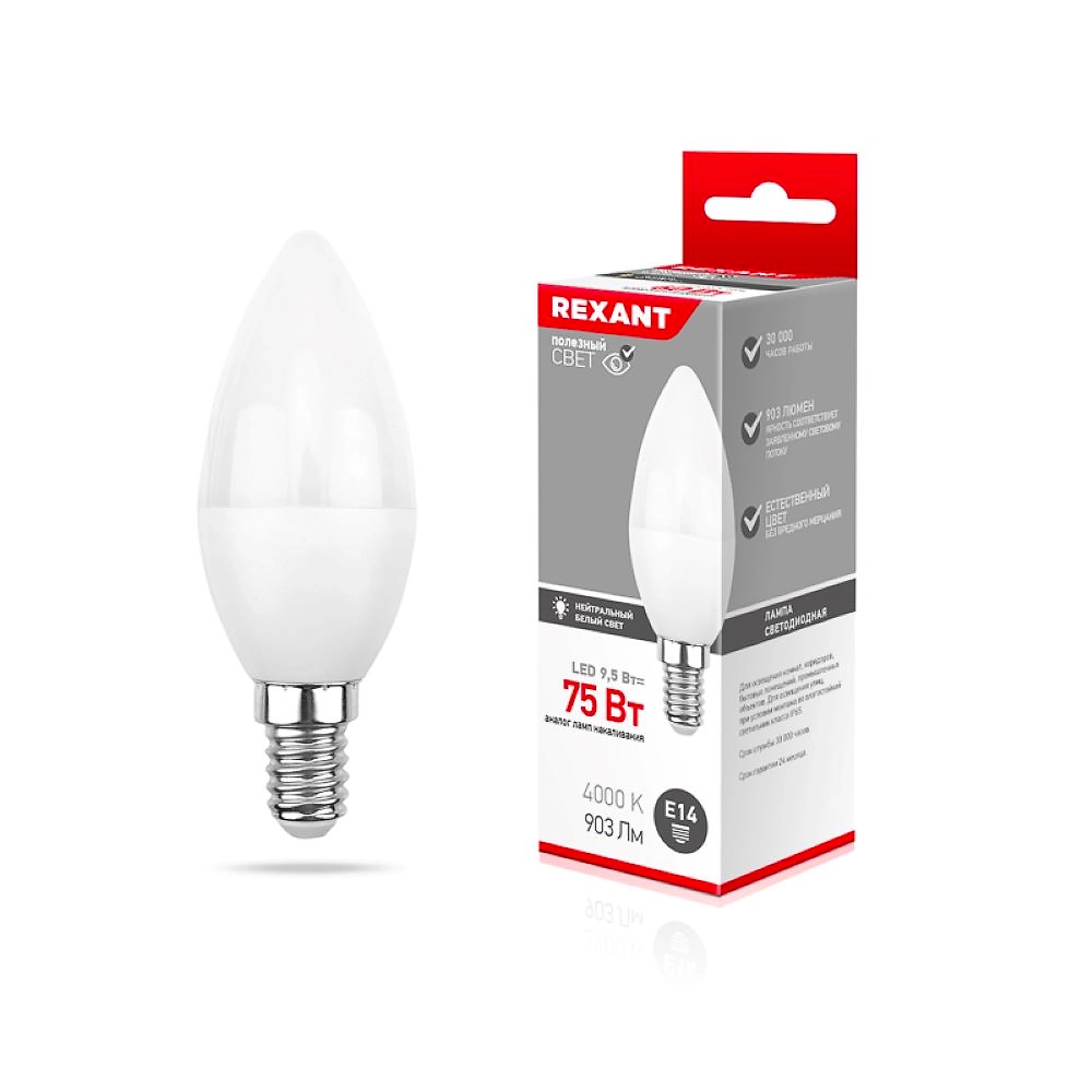 Лампа светодиодная Rexant свеча (CN) 9,5 Вт E14 нейтральный свет