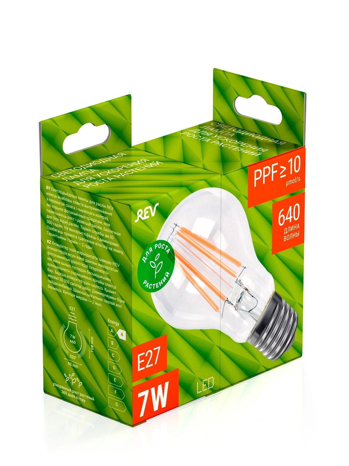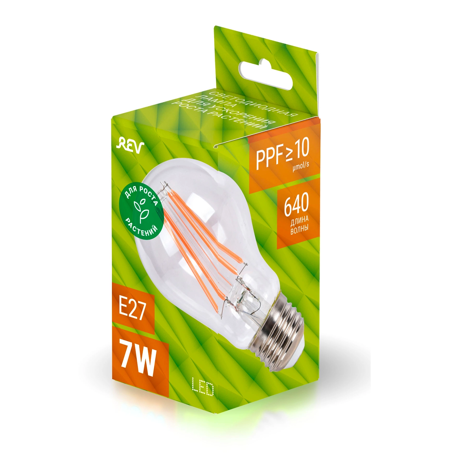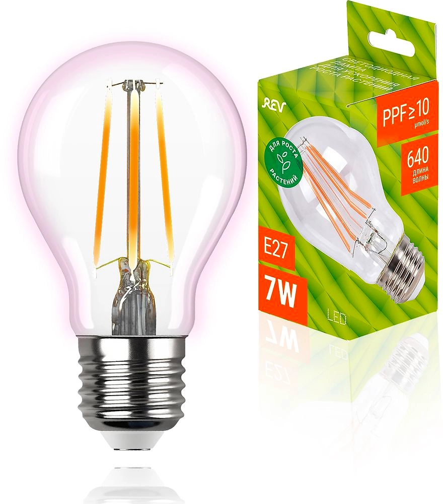Светодиодная филаментная лампа для ускорения роста растений REV 7W 32416 4